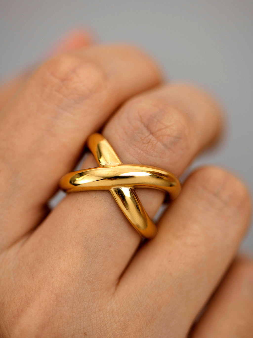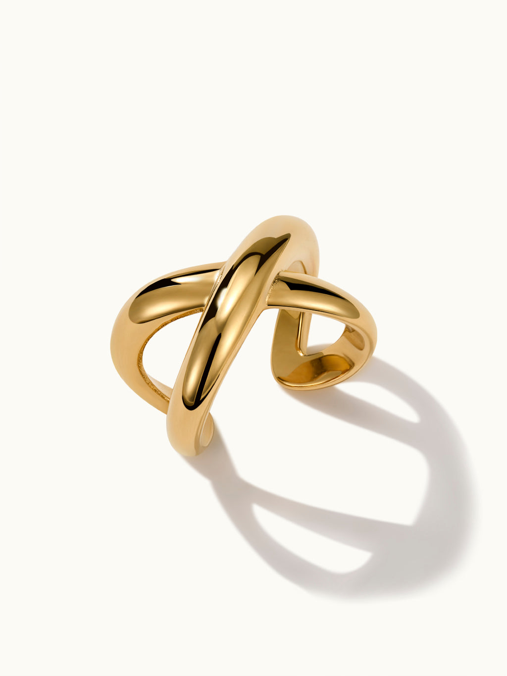 Werten Sie Ihren Stapel mit dem Axis X Twisted Ring auf. Mit seinem schlanken, kreuzförmigen Design verbindet er modernen Minimalismus mit zeitloser Eleganz.
