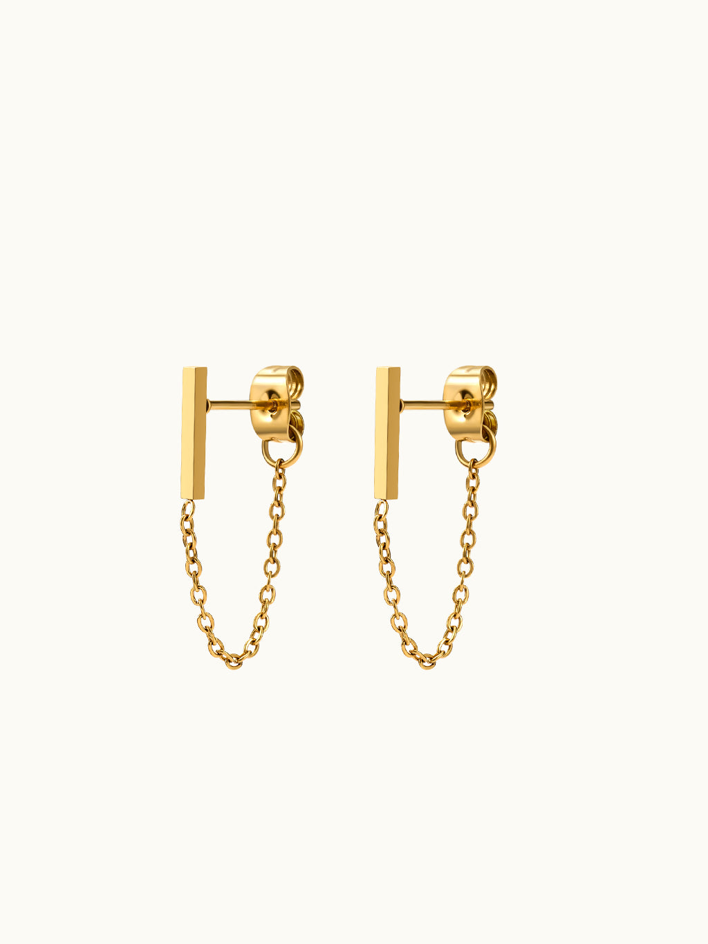 Verleihen Sie Ihrem Look mit Bar Line Chain Stud Ohrringe einen Hauch von Eleganz. Mit ihrem modernen Barren- und zarten Kettendesign bieten sie kantige Eleganz für jeden Anlass.
