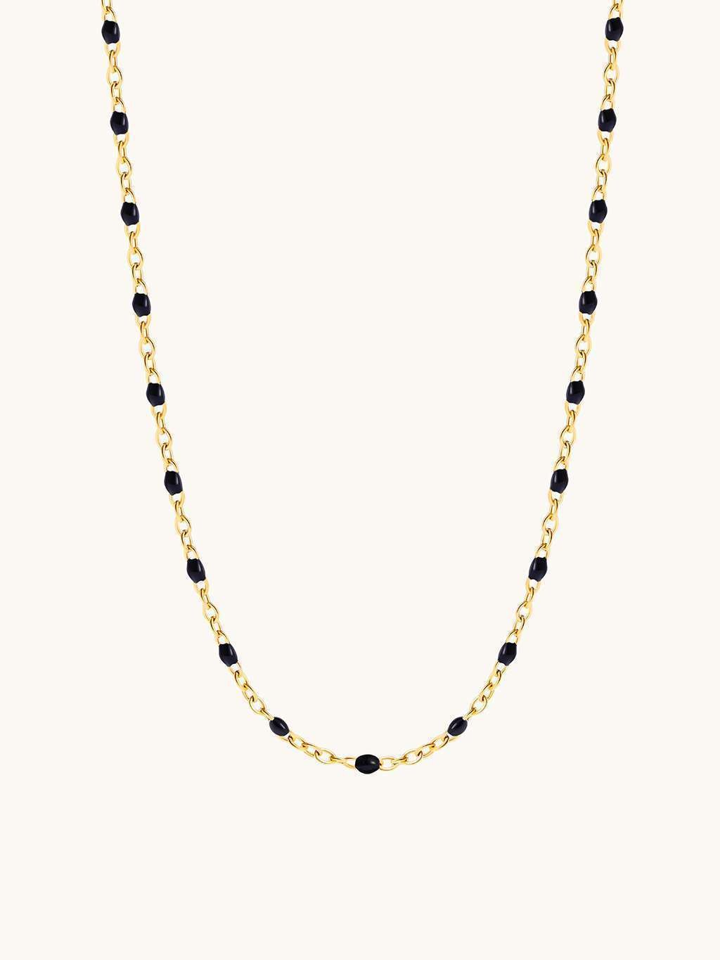 Entfesseln Sie Ihre mutige und gewagte Seite mit unserer exquisiten schwarzen Emaille-Perlenkette in Gold. Diese Kette aus glatten und schimmernden schwarzen Emaille-Perlen verleiht jedem Outfit einen Hauch von Kantigkeit. Werten Sie Ihren Stil mit diesem Must-have-Accessoire auf.