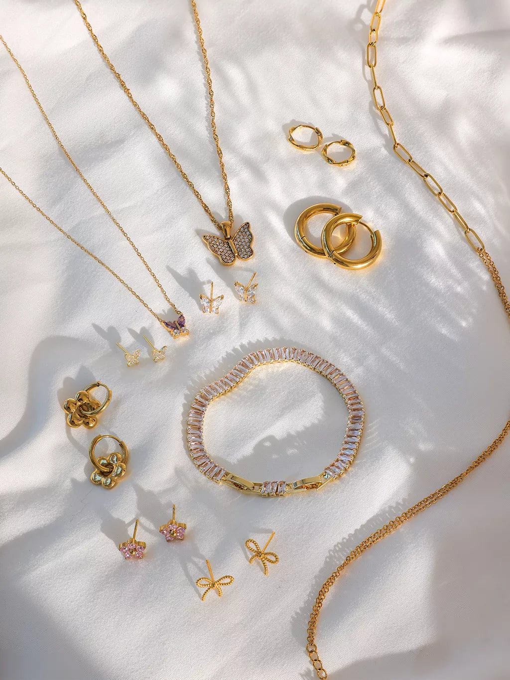Die Butterfly Sparkle-Ohrringe sind mit zarten, mit Zirkonia besetzten Schmetterlingen verziert und verleihen jedem Look einen Hauch von Eleganz und Schimmer. Diese funkelnden Ohrringe sind perfekt, um sowohl lässigen als auch formellen Outfits ein wenig von der Natur inspirierte Schönheit zu verleihen.