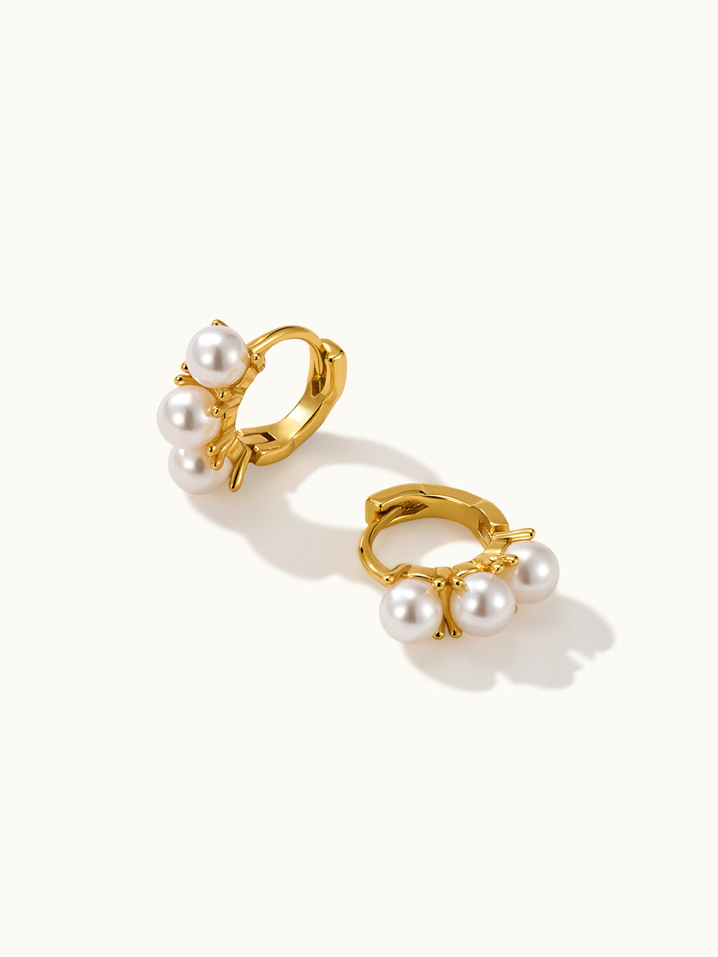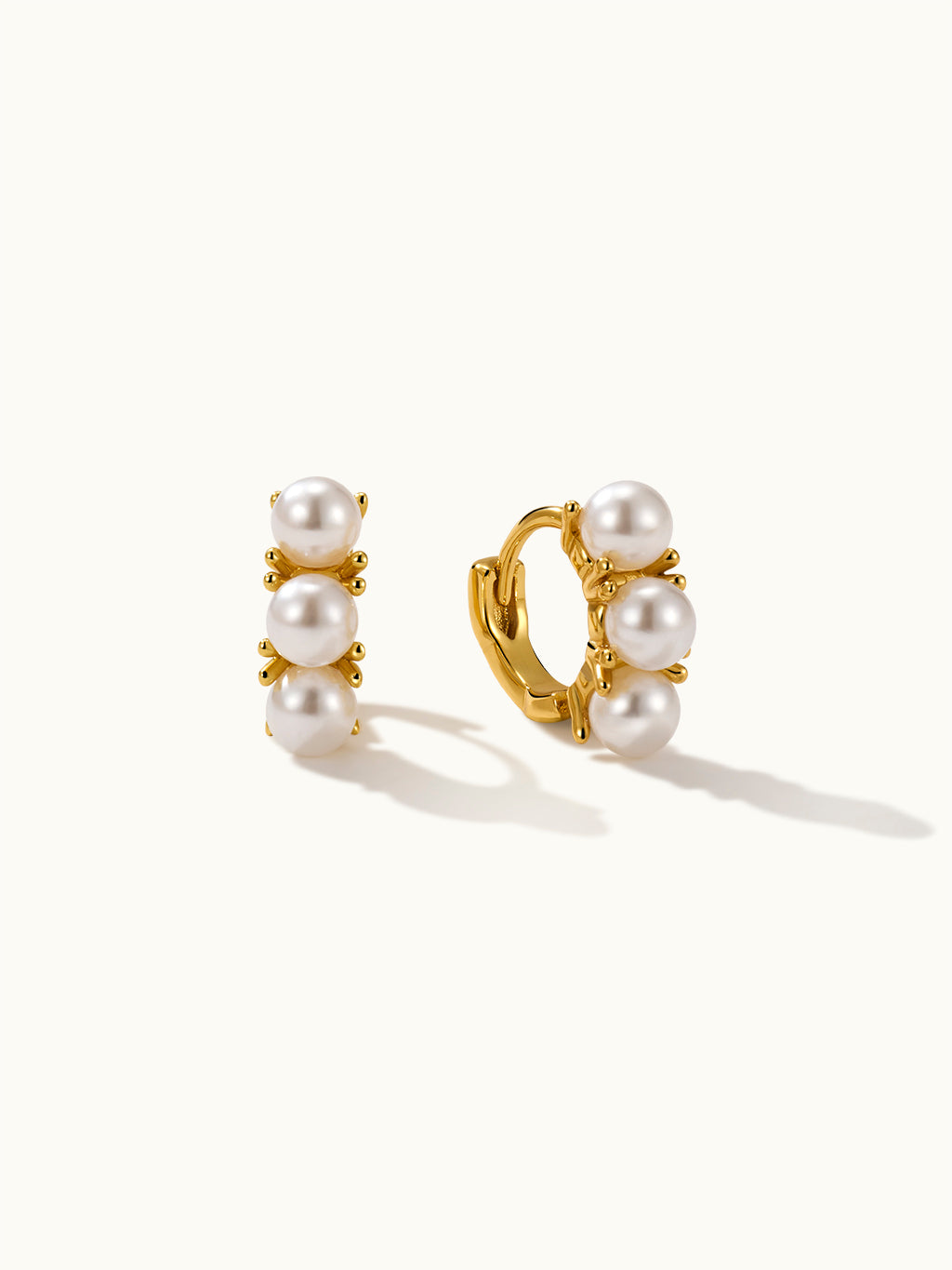 Die Button Pearl Hoop Ohrringe bestehen aus klassischen Perlen auf schlanken Ringen und vereinen zeitlose Eleganz mit einem modernen, vielseitigen Design.