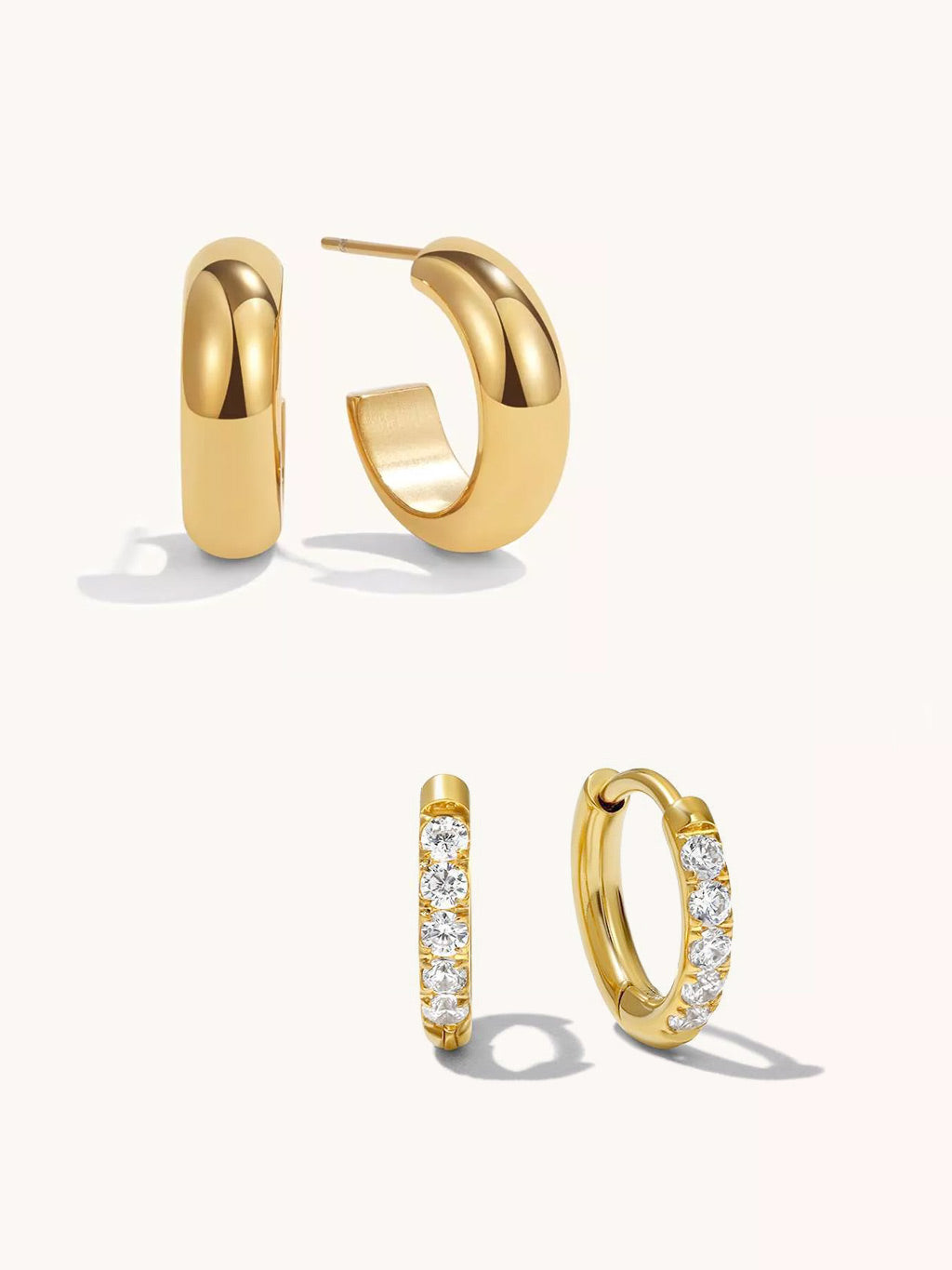 Das Chunky Small Hoops und Classic Zirkonia mini Hoops Ohrringe Set vereint kräftigen Glanz mit zartem Funkeln – perfekt zum Mischen, Anpassen oder Schichten.