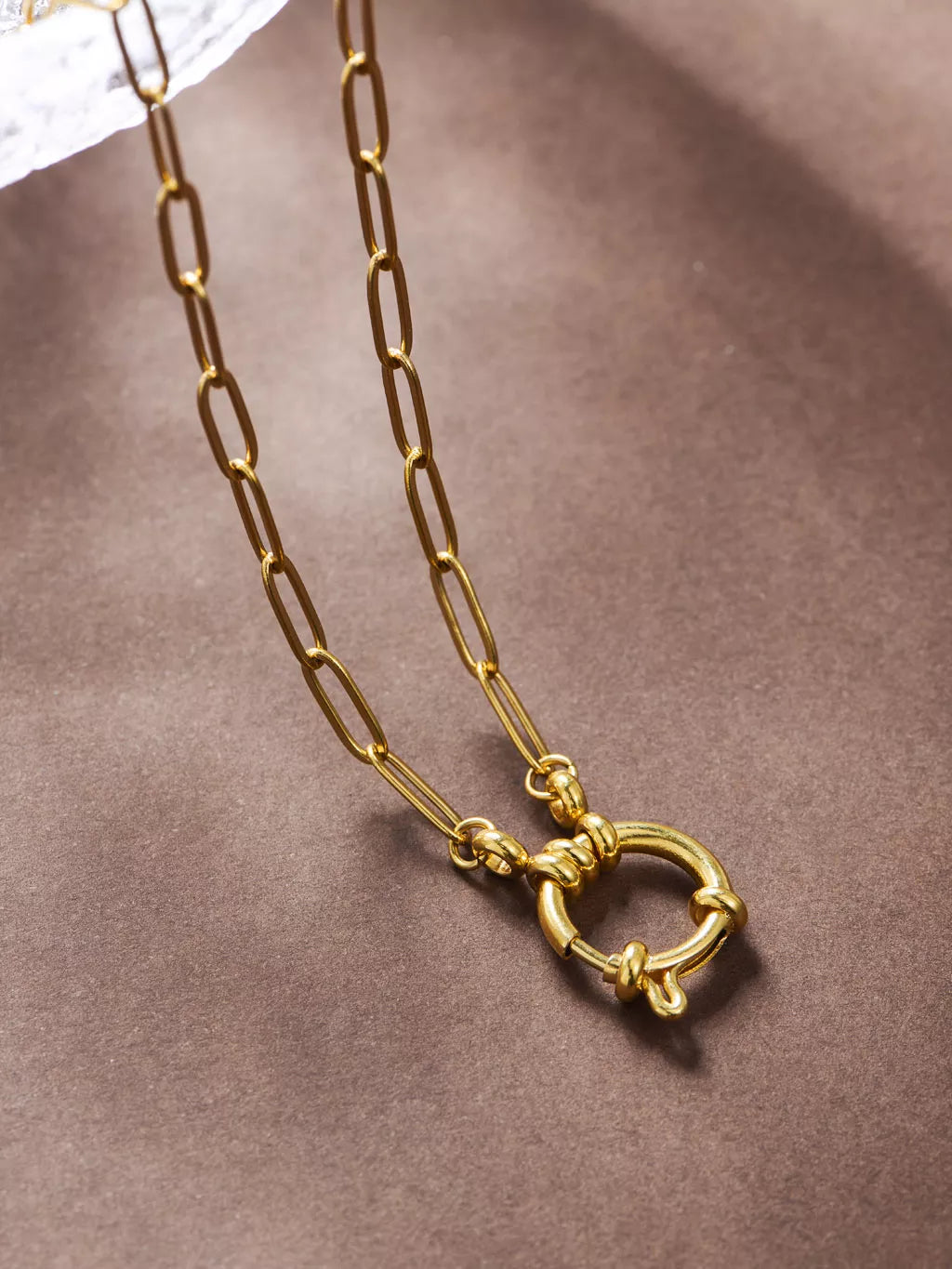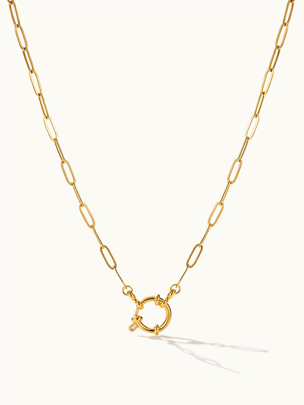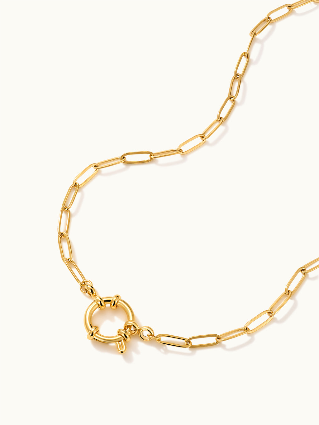 Die Circular Spring Clasp Paperclip Chain Kette kombiniert moderne Eleganz mit einem auffälligen Büroklammerdesign und einem sicheren runden Verschluss, perfekt für den Lagenlook.