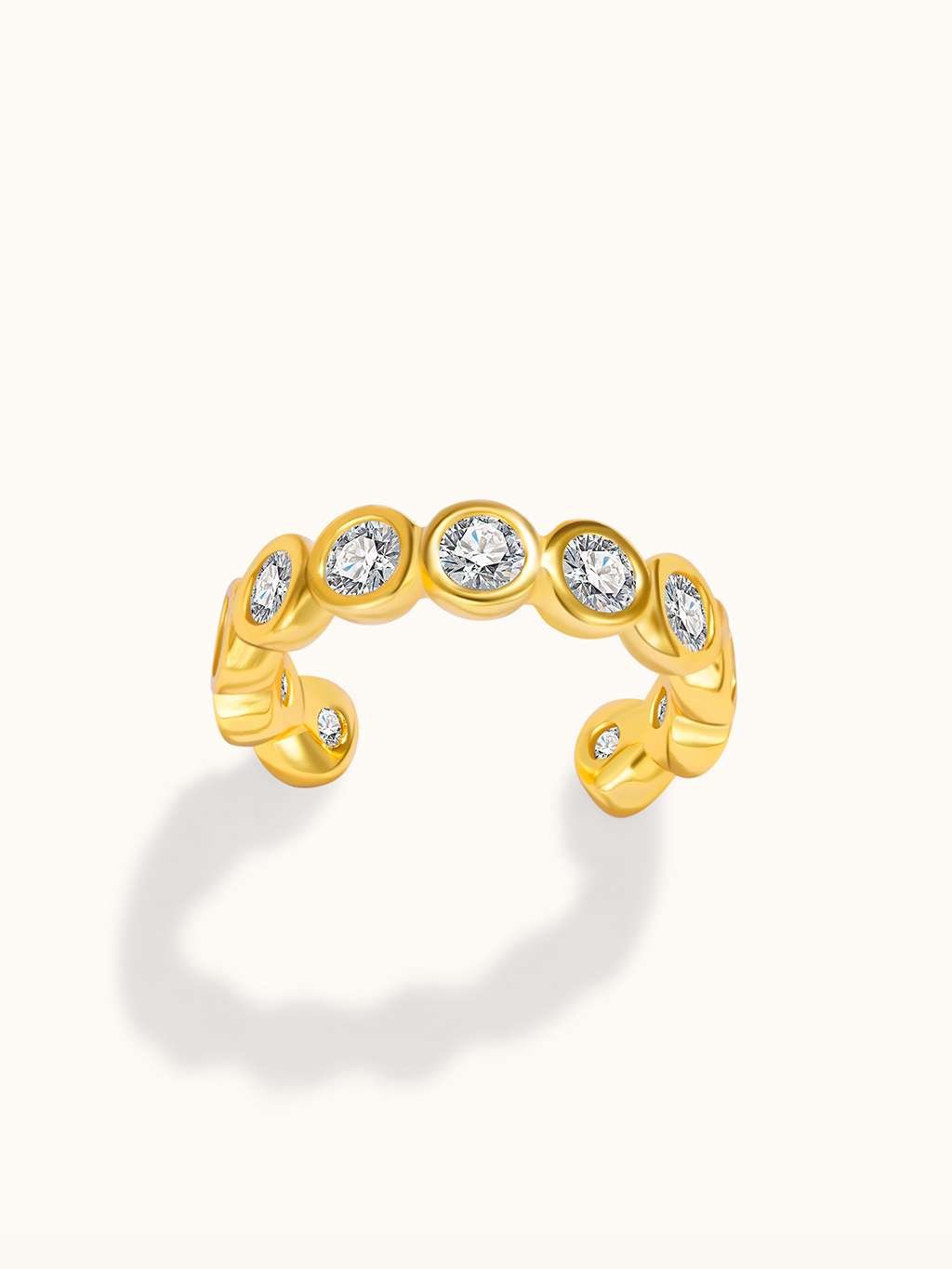 Erleben Sie neue Abenteuer mit unserem Clear Shine Ear Cuff Gold! Dieses auffällige Stück hat einen schimmernden, klaren Glanz, der jedem Outfit einen Hauch von Wagemut verleiht. Heben Sie sich von der Masse ab und zeigen Sie Ihre risikofreudige Seite mit unserem abenteuerlichen Ear Cuff.