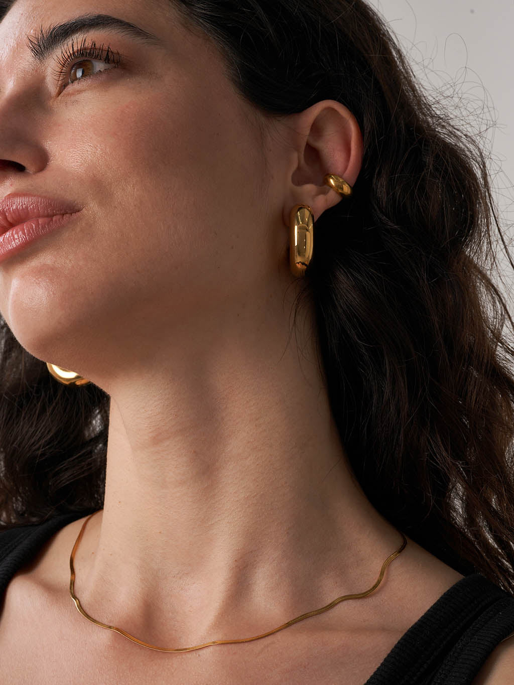 Dieses exquisite Schmuckstück ist mit 18 Karat Goldbeschichtung gefertigt und strahlt Eleganz und Raffinesse aus. Das minimalistische Design mit einem zarten Goldband präsentiert Ihre Individualität und Ihren Stil auf wunderbare Weise. Dieser mit Liebe zum Detail handgefertigte Ohrring ist sowohl wasserdicht als auch allergiefreundlich und sorgt für Komfort und Haltbarkeit.