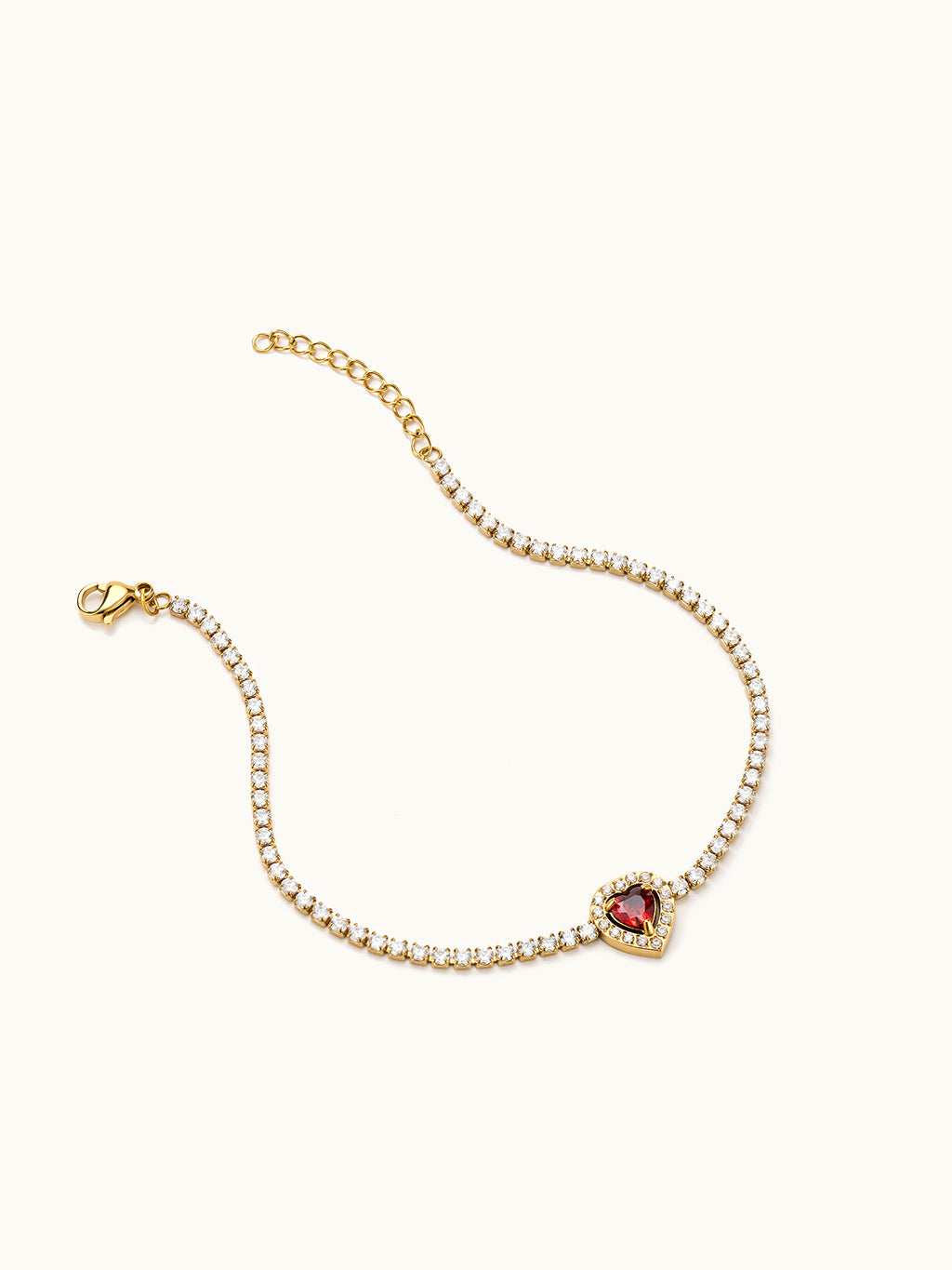 Das Crimson Heart Tennis Armband ist ein atemberaubendes Schmuckstück mit leuchtend roten Edelsteinen, eingefasst in ein elegantes Silber- oder Edelstahlband. Dieses Armband ist perfekt, um jedem Outfit einen Hauch von Eleganz zu verleihen. Es ist ein zeitloses Accessoire, das klassisches Design mit kräftiger Farbe kombiniert.