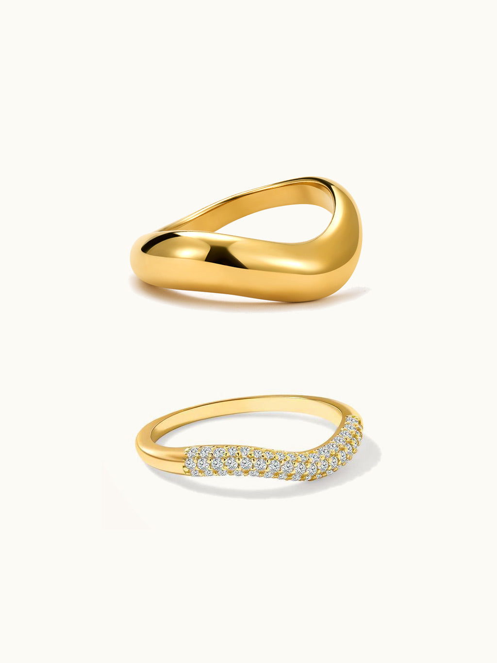 Dome Wave Ring & Wave Ring With Zirconia Gold Set