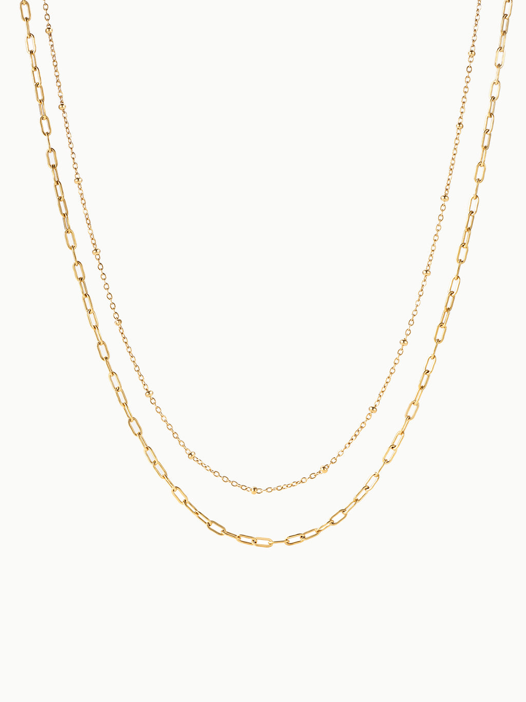 Werten Sie Ihren Stil mit der Double Dainty Kette auf. Dieses minimalistische Design mit zwei zarten Schichten eignet sich perfekt zum Tragen in mehreren Schichten oder allein.