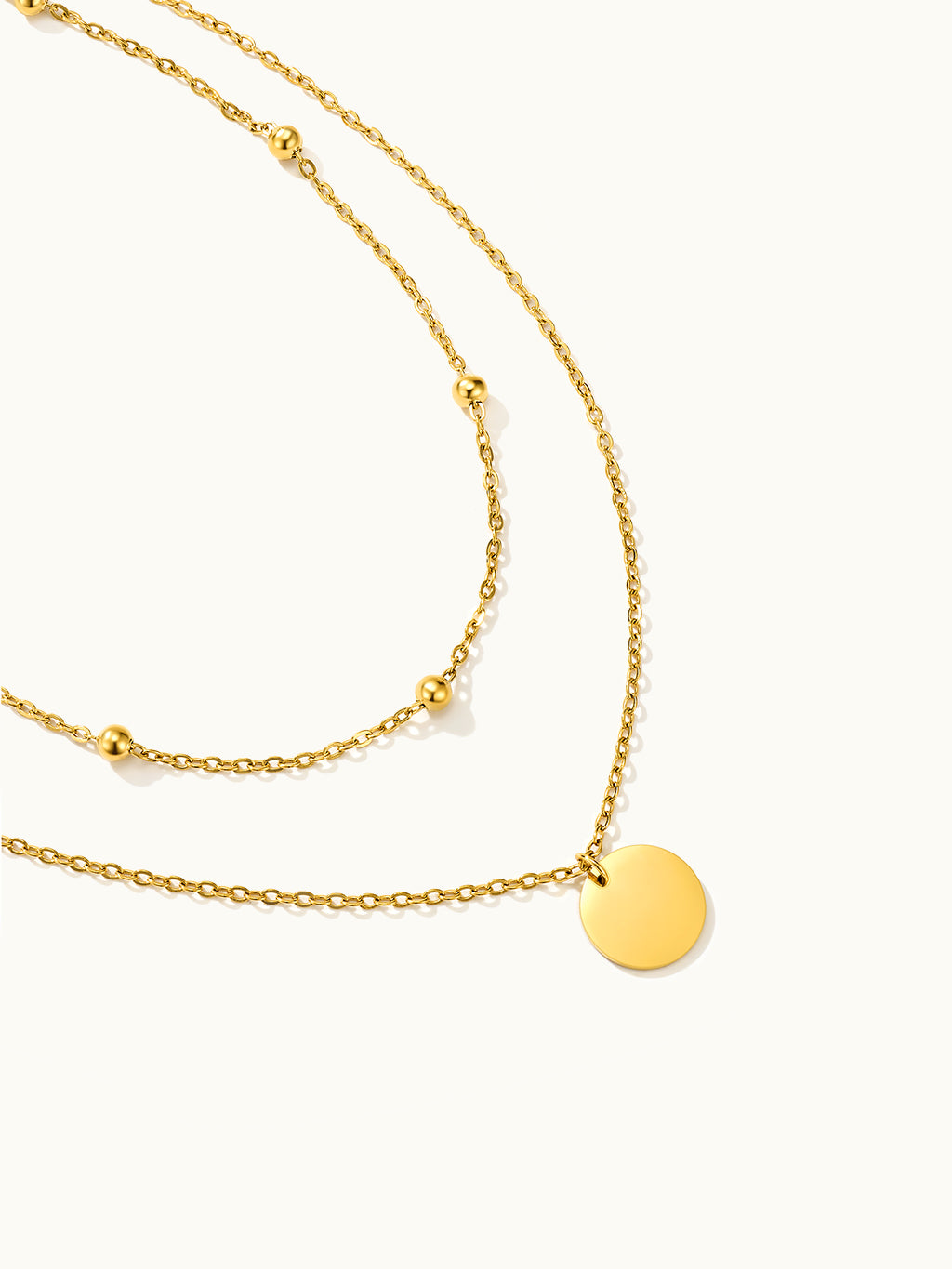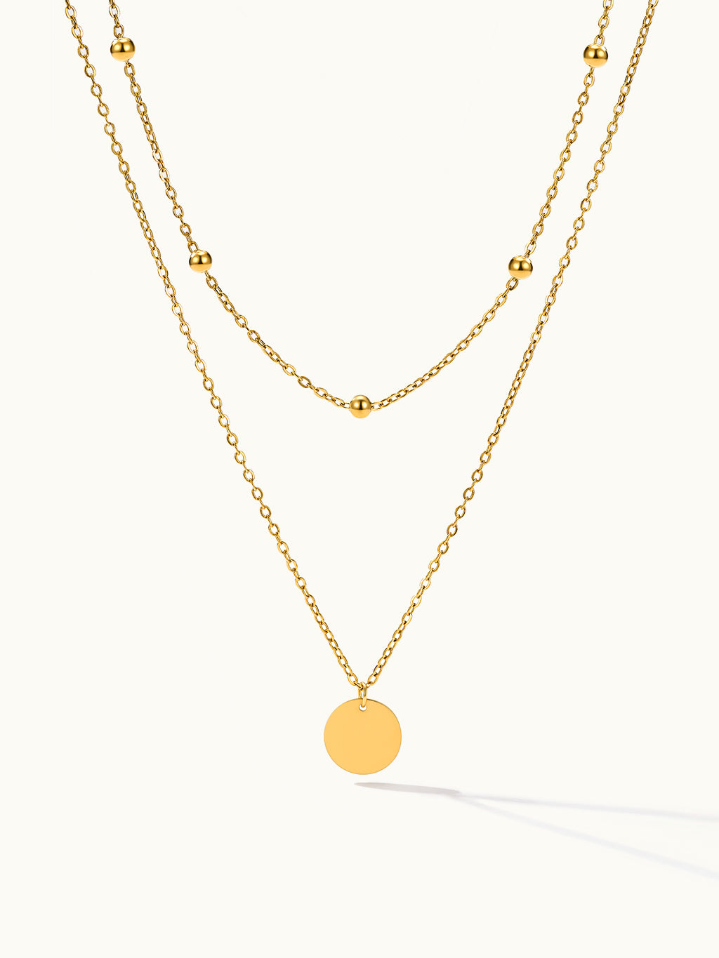 Werten Sie Ihren Alltagsstil mit dieser Double Layered Disc Kette auf, die minimalistischen Charme und vielseitige Eleganz für jedes Outfit und jeden Anlass bietet.