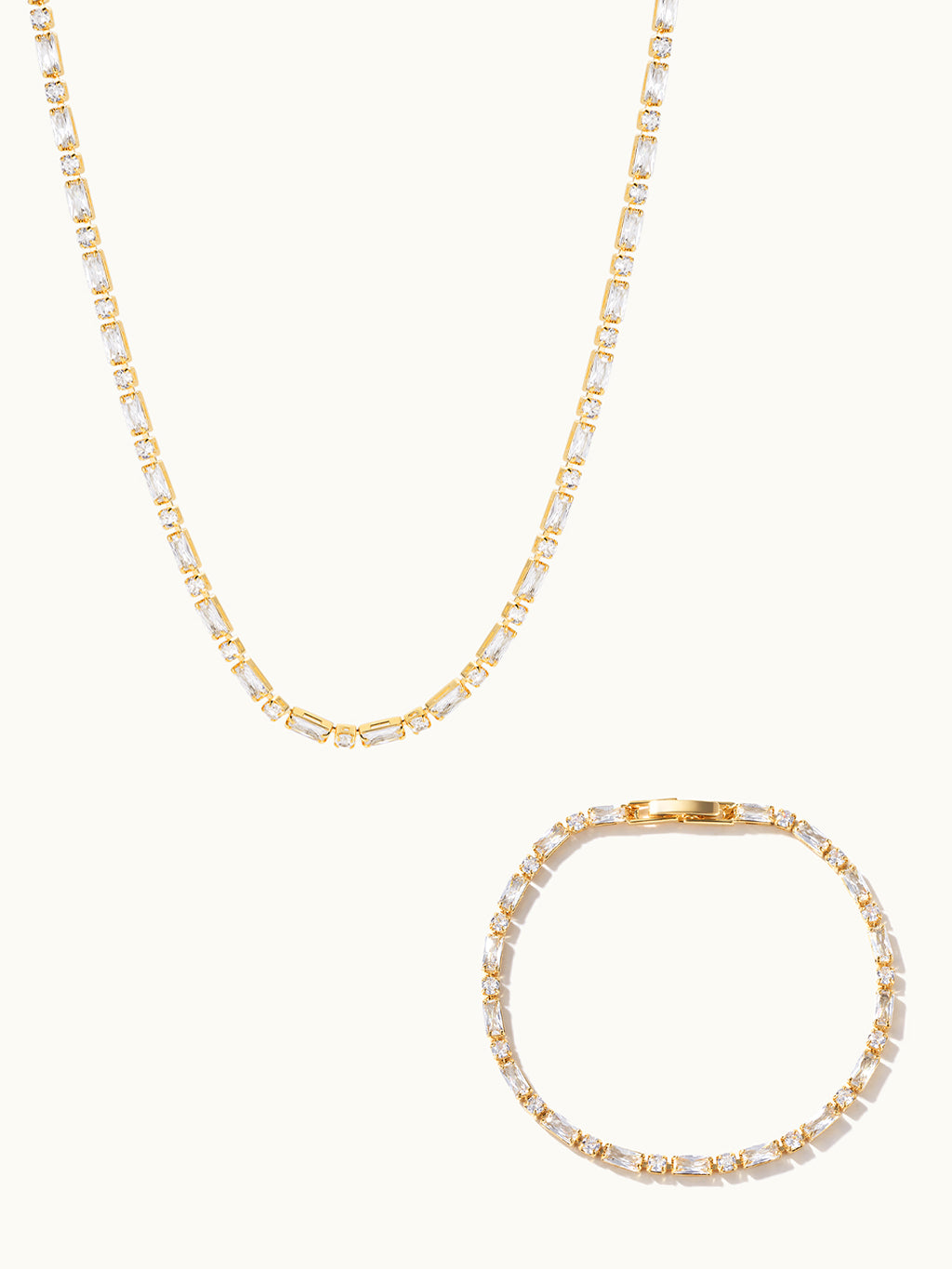 Werten Sie Ihren Stil mit dem Eve Tennis Kette & Armband Set auf. Mit schimmernden Steinen in klassischem Design ist es perfekt für Glamour tagsüber und abends.