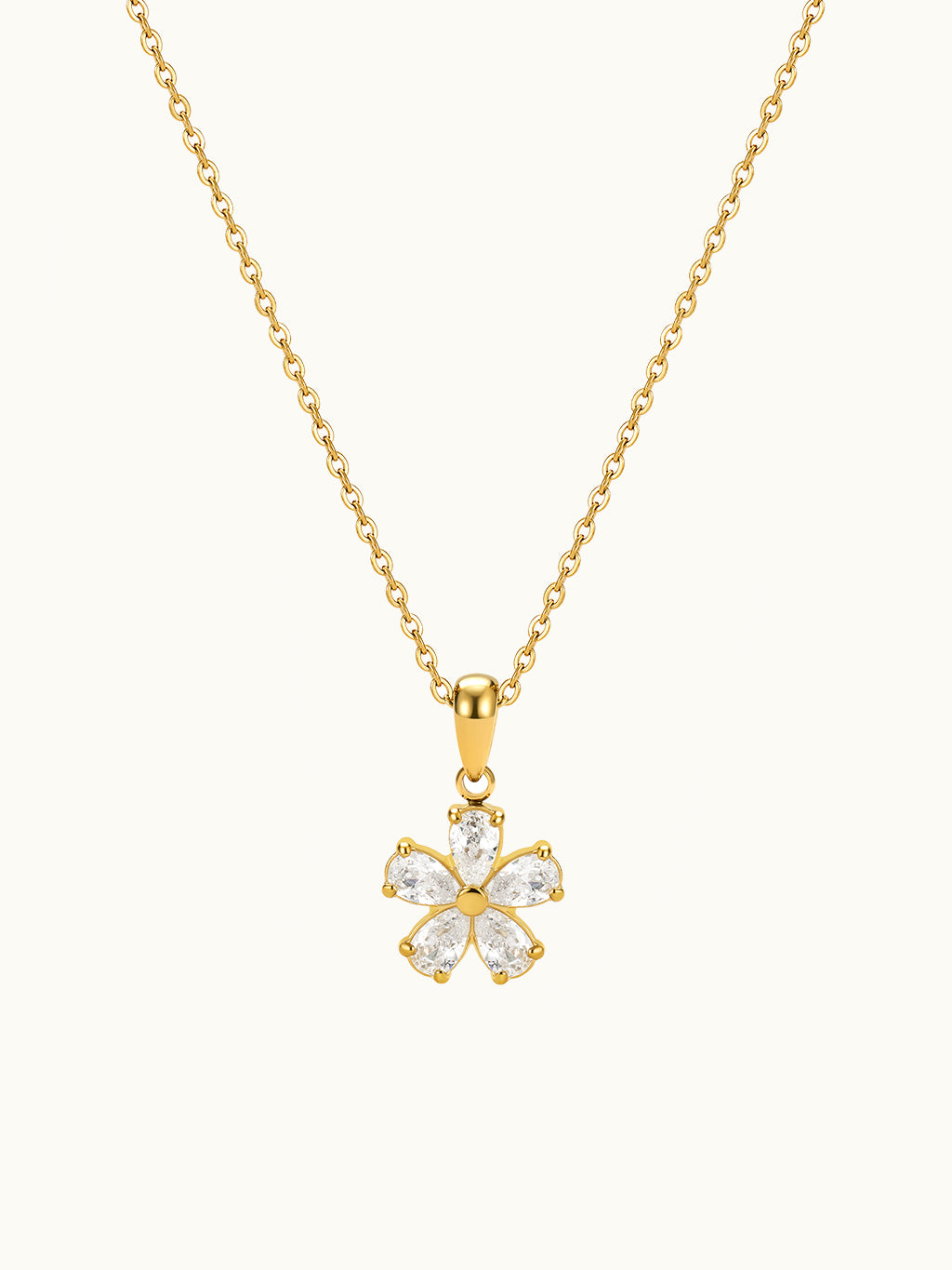Verleihen Sie Ihrem Stil mit der Five Flower Petal Dangle Kette florale Eleganz. Mit ihren zarten Blütenblattanhängern verleiht sie Ihrem Look einen anmutigen Charme.