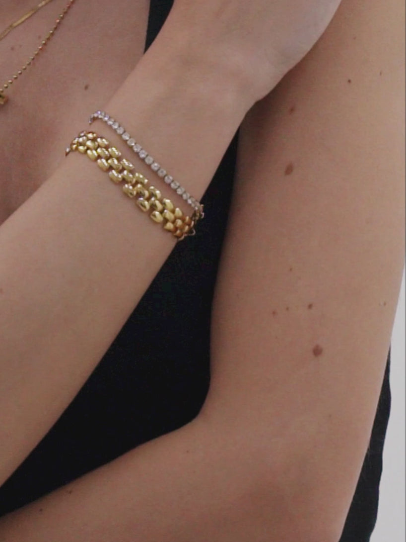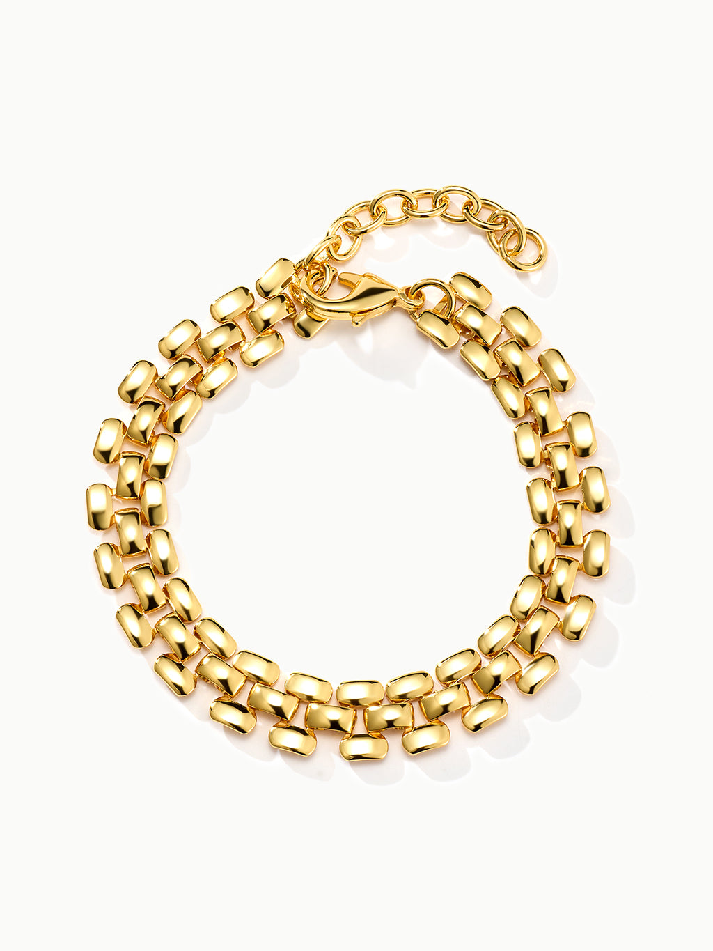 Werten Sie Ihren Stil mit dem Flat-link Gold Armband auf. Dieses Armband mit seinem eleganten, modernen Design und den polierten Goldgliedern verleiht jedem Look eine raffinierte Note.