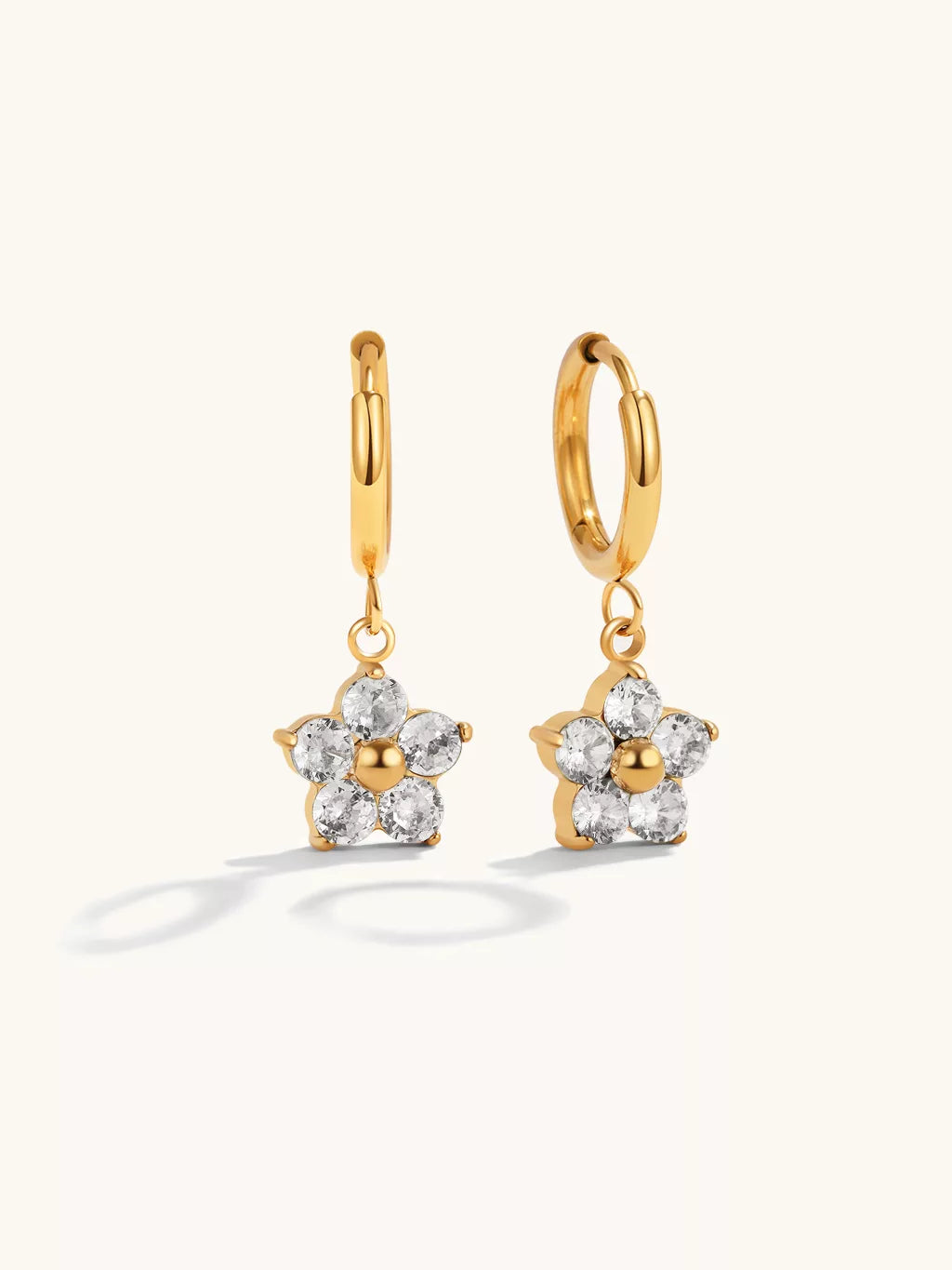 Flower Ohrringe in Gold sind die perfekte Ergänzung für jede Schmuckkollektion. Diese 10 mm großen Creolen verfügen über ein zartes Blumendesign und verleihen jedem Outfit einen Hauch von Weiblichkeit und Charme.
