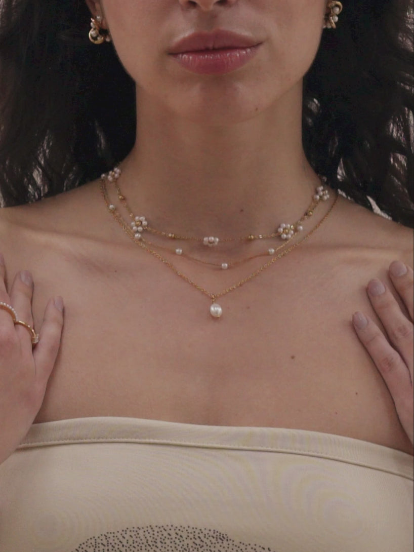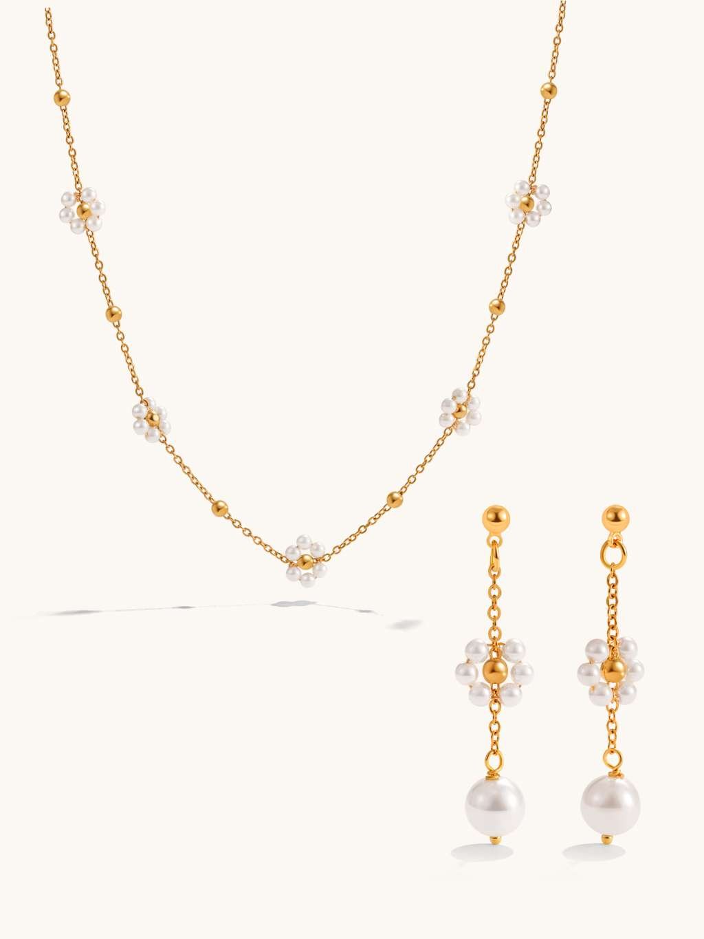 Flower Pearl Kette und Ohrringe Set