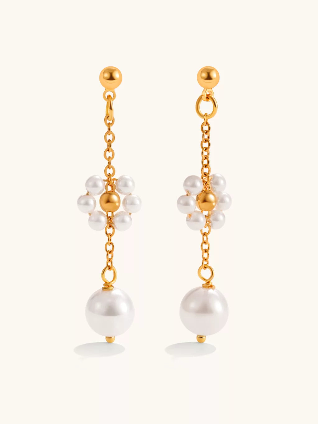 Diese Ohrringe aus zarten, blumenförmigen Ohrsteckern und glänzenden Perlen strahlen Eleganz und Luxus aus. Diese Ohrringe sind perfekt für jeden Anlass und ein Muss für modebewusste Menschen. Werten Sie Ihren Stil mit diesen atemberaubenden Ohrringen auf.