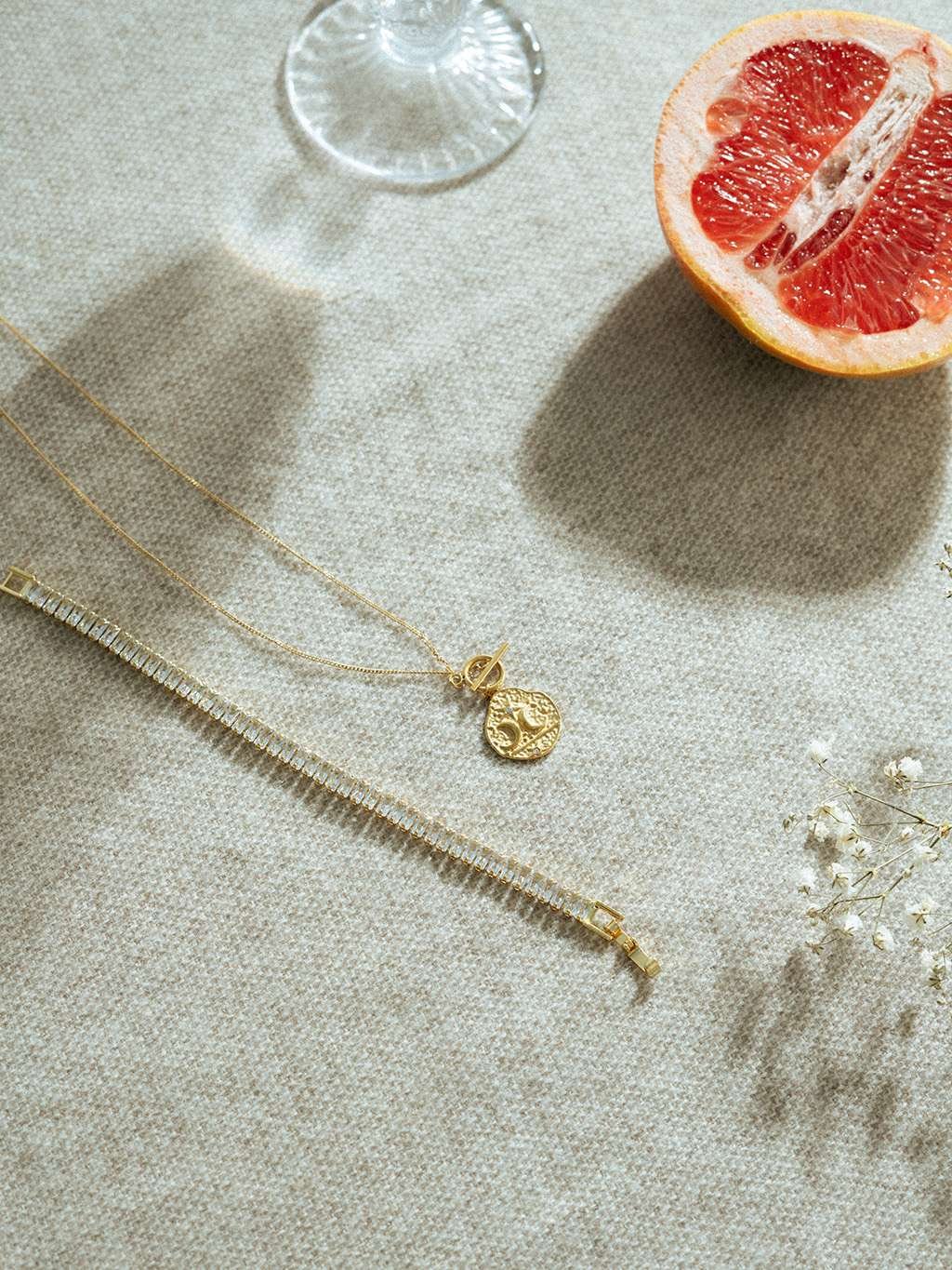 Verleihen Sie Ihrem Outfit mit dem Full Shine Bracelet Gold etwas Glanz! Dieses stilvolle Accessoire ist ein echter Hingucker und wertet jeden Look auf. Lassen Sie sich den Glanz nicht entgehen!