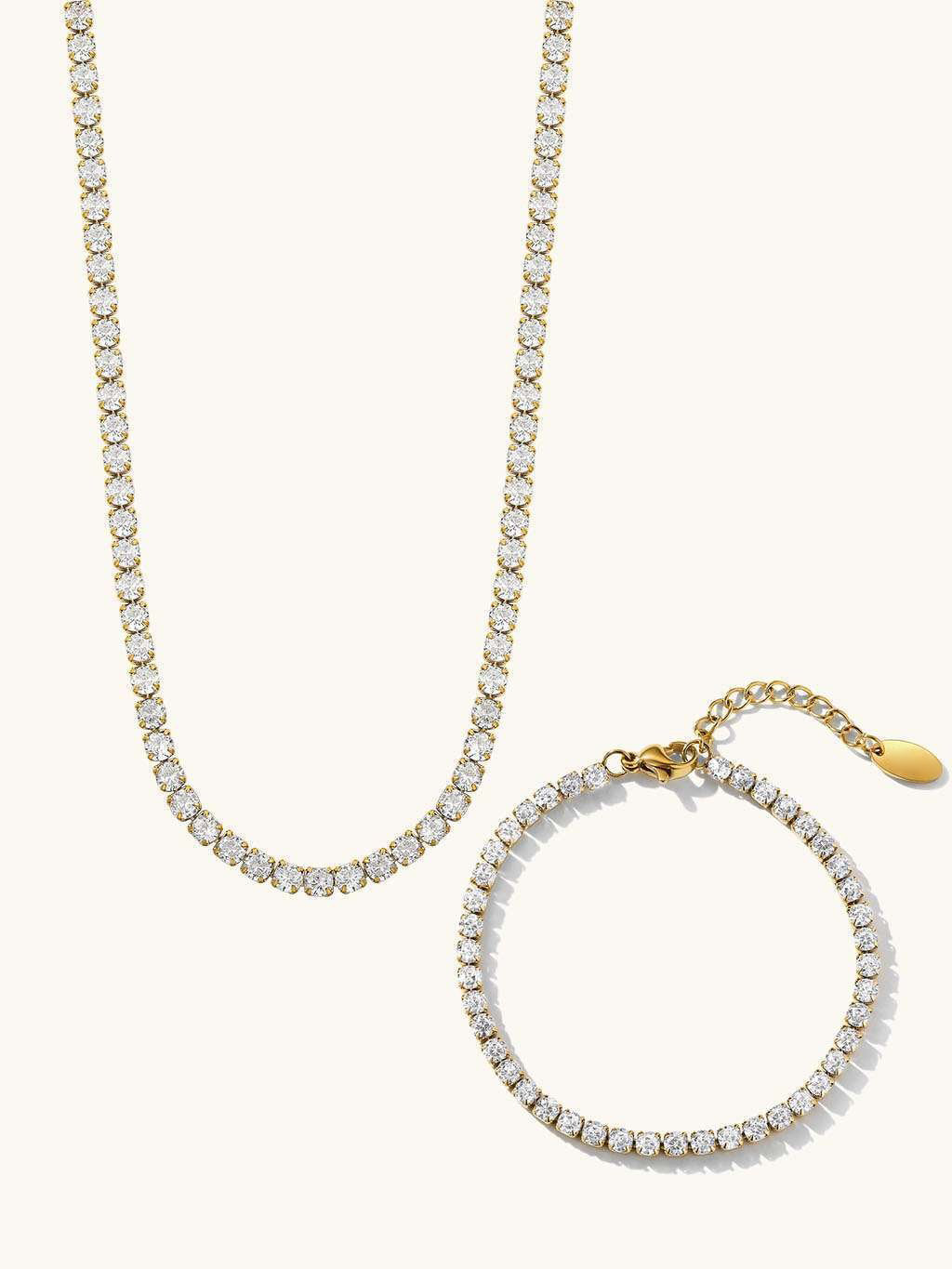 Dieses Set enthält eine Tenniskette mit Zirkonia und ein klassisches Tennisarmband in Hochglanzoptik. Dieses Set wurde aus hochwertigen Materialien und mit exquisiten Details gefertigt und strahlt Raffinesse und Eleganz aus.