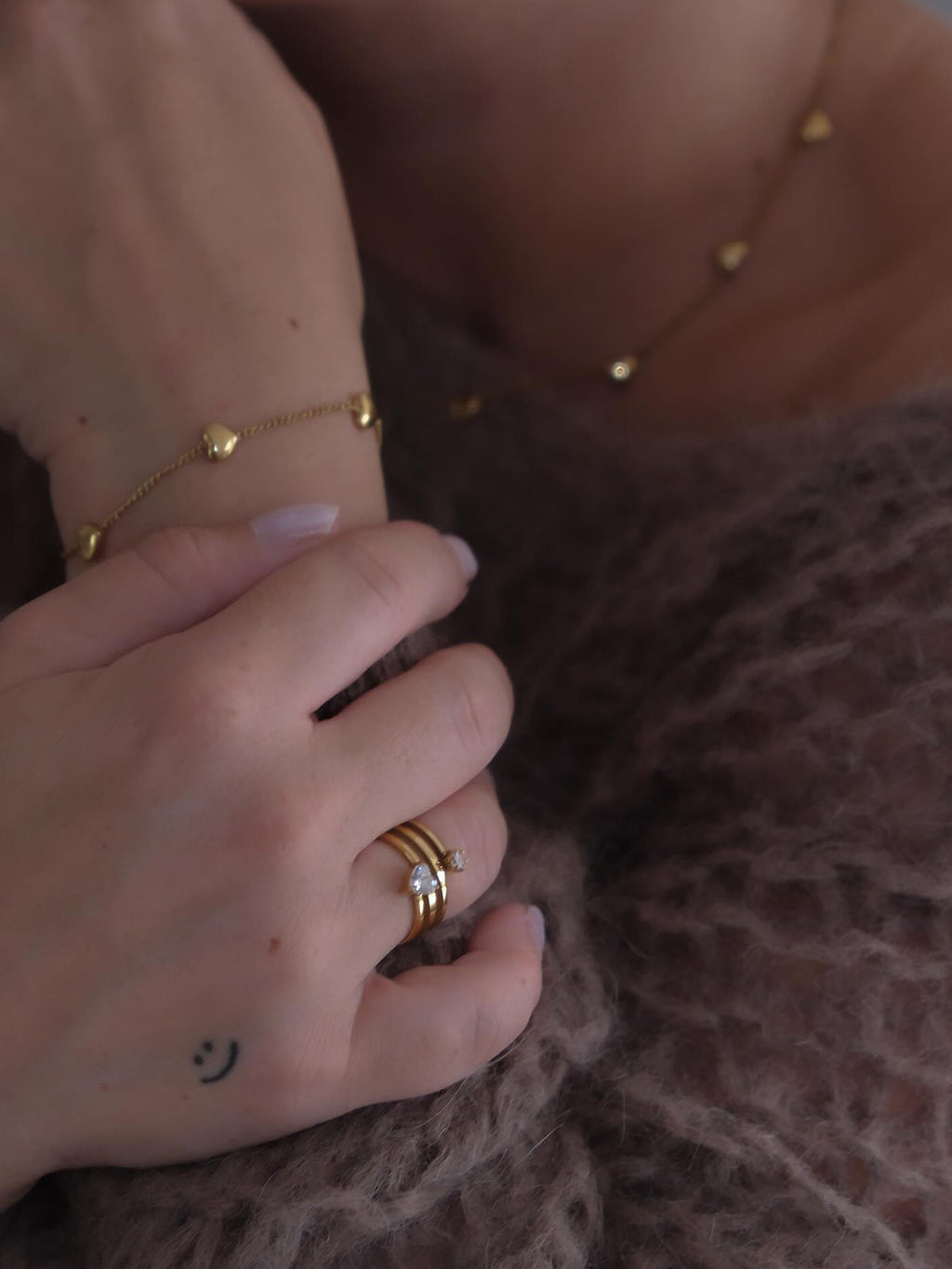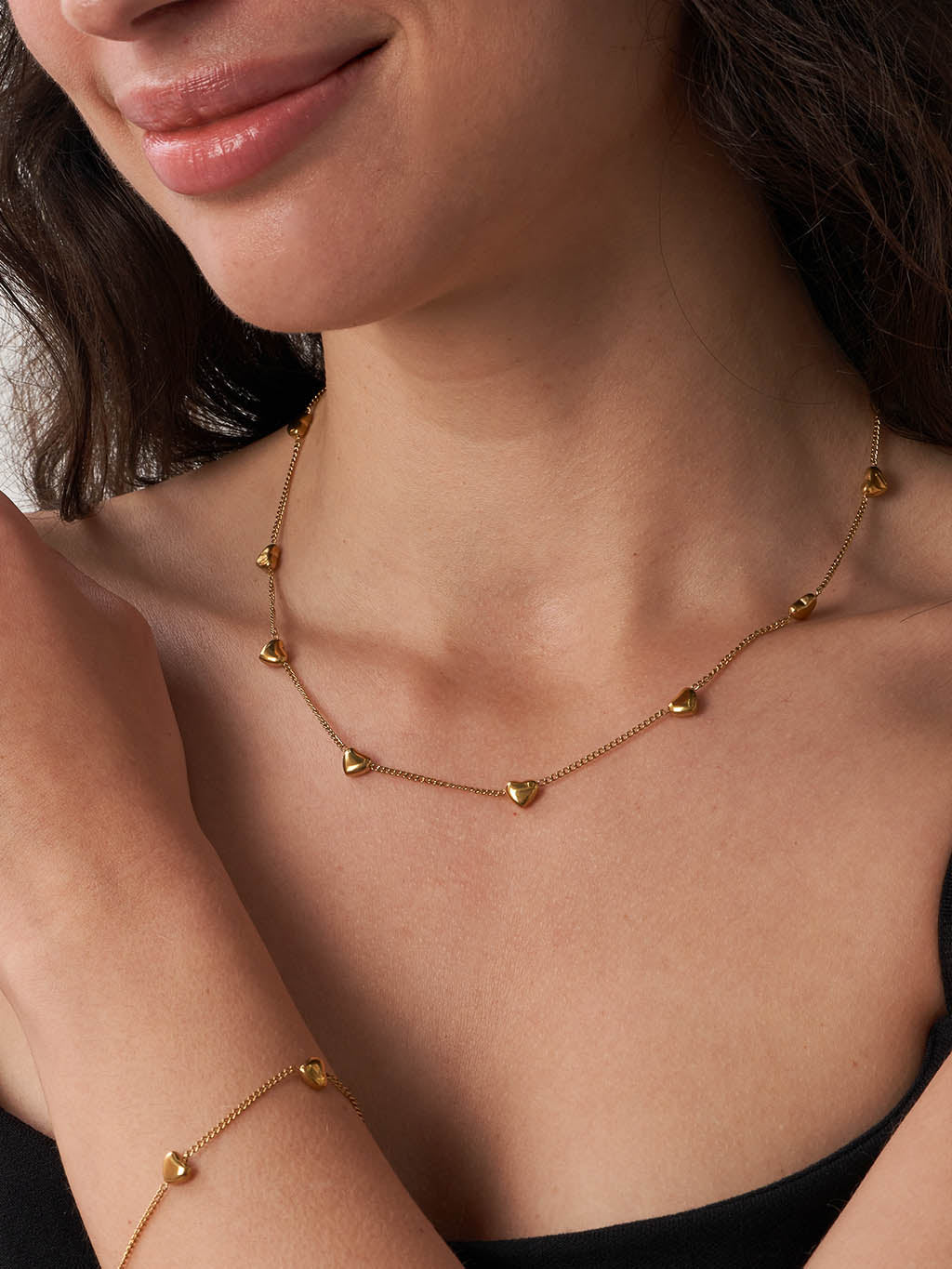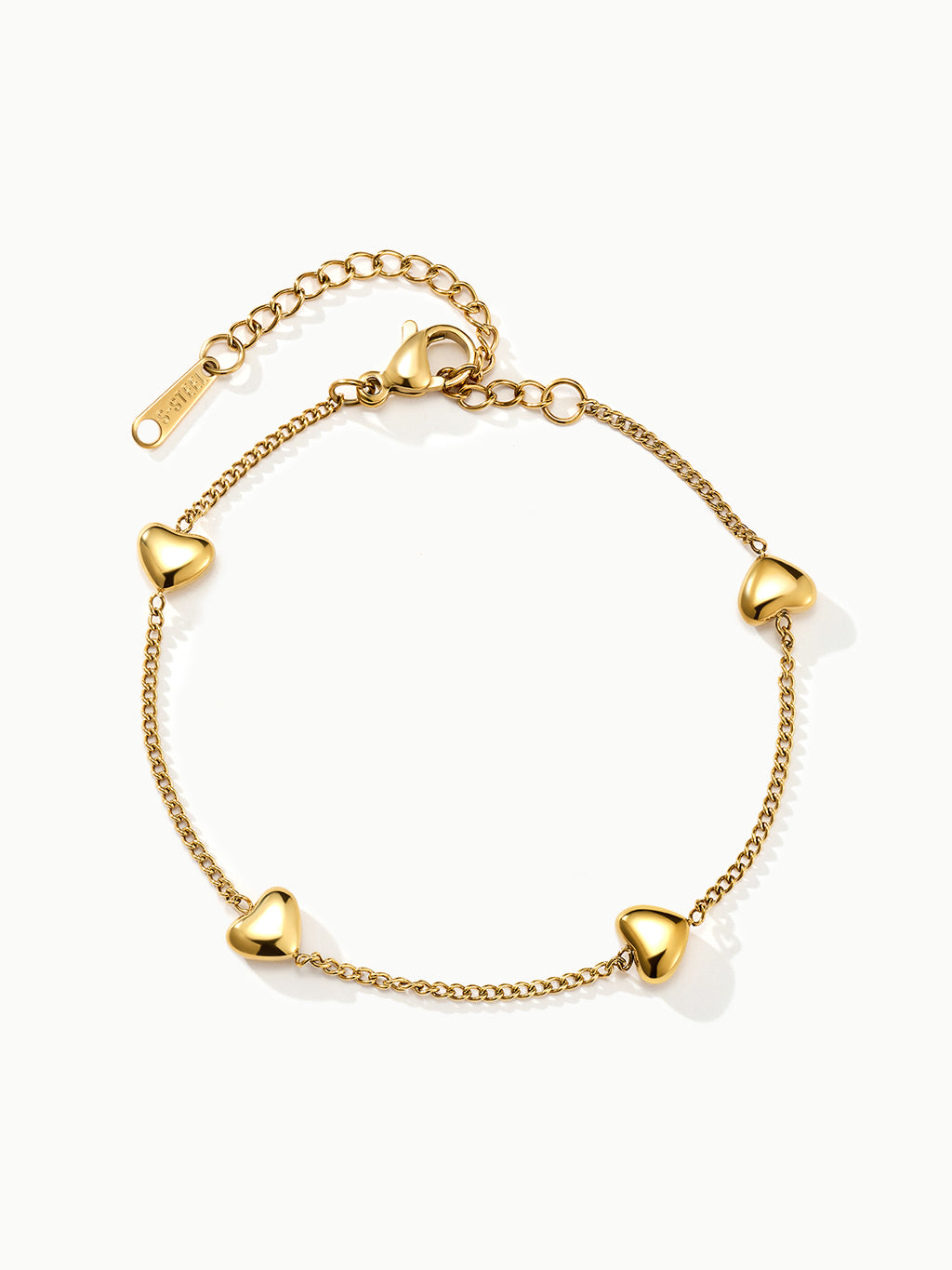 Verleihen Sie Ihrem Look mit dem Gold Heart Chain Armband Charme. Mit einer zarten Kette und einem süßen Herzdetail ist es perfekt für alltägliche Eleganz oder als Geschenk.