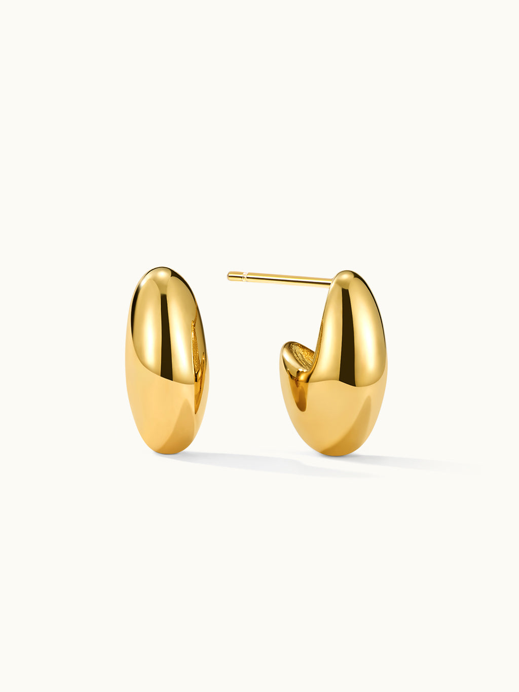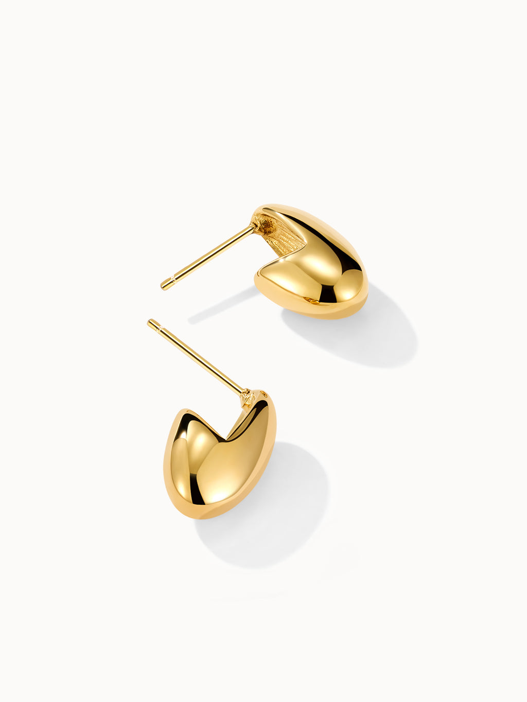 Die Golden Bean Hoop Ohrringe zeigen ein einzigartiges, organisches Design, das von den sanften Kurven einer Bohne inspiriert ist. Diese aus hochwertigem goldfarbenem Metall gefertigten Ohrringe bieten eine Mischung aus moderner Raffinesse und natürlicher Eleganz. Ihr leichtes, bequemes Design macht sie perfekt für den Alltag oder als dezentes Statement zu jedem Outfit.