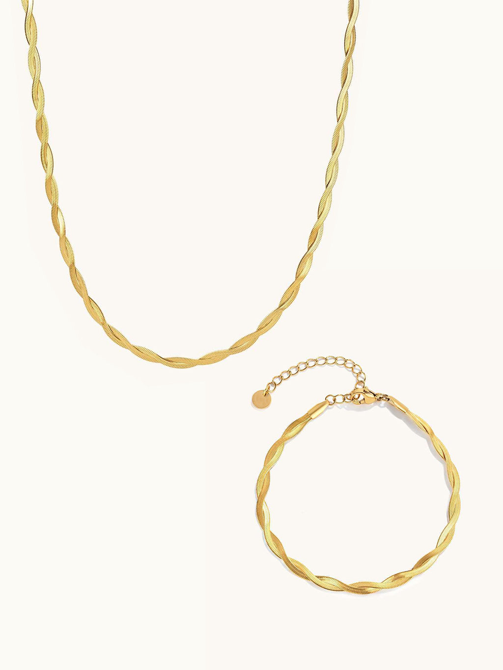 Das Graceful Kette & Armband Set verleiht jedem Look zeitlose Eleganz. Mit seinen klaren Linien und dem dezenten Glanz ist es perfekt für jeden Anlass.