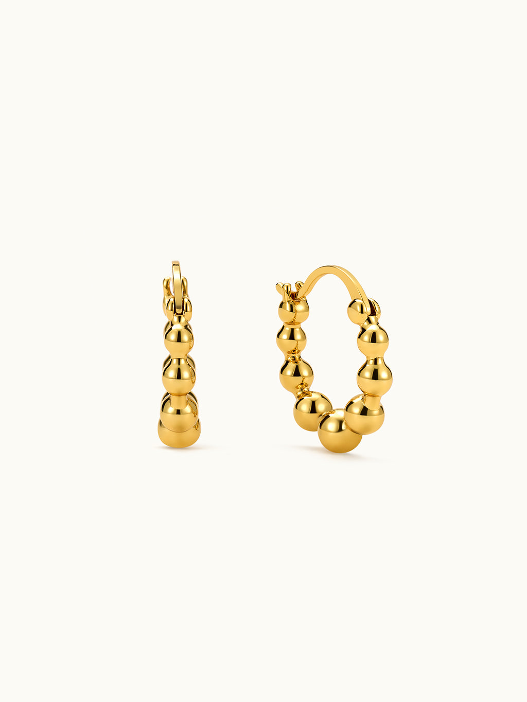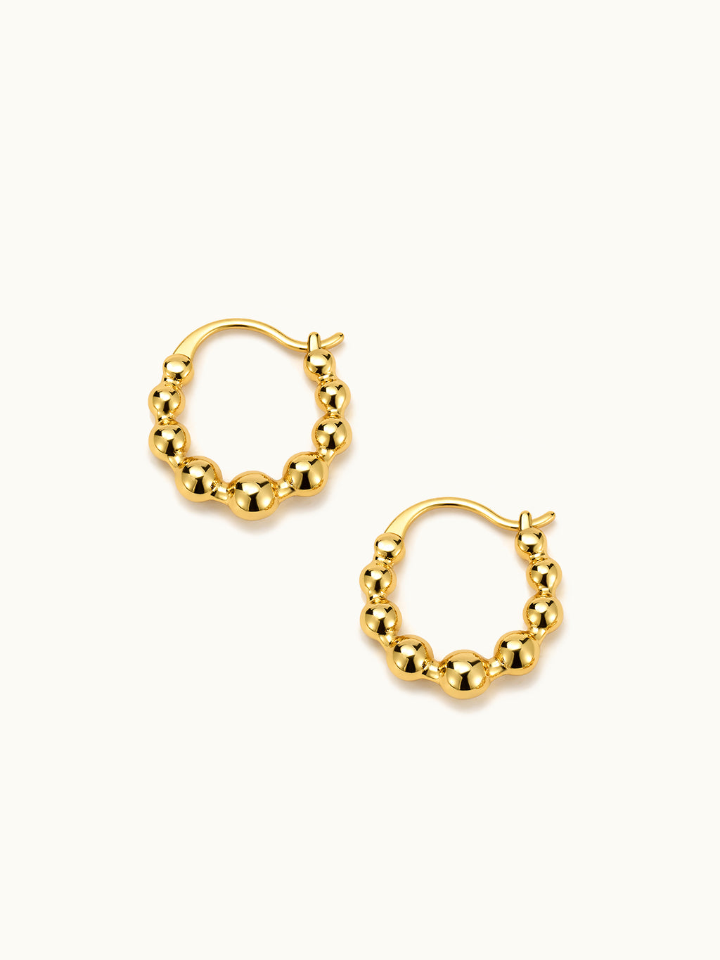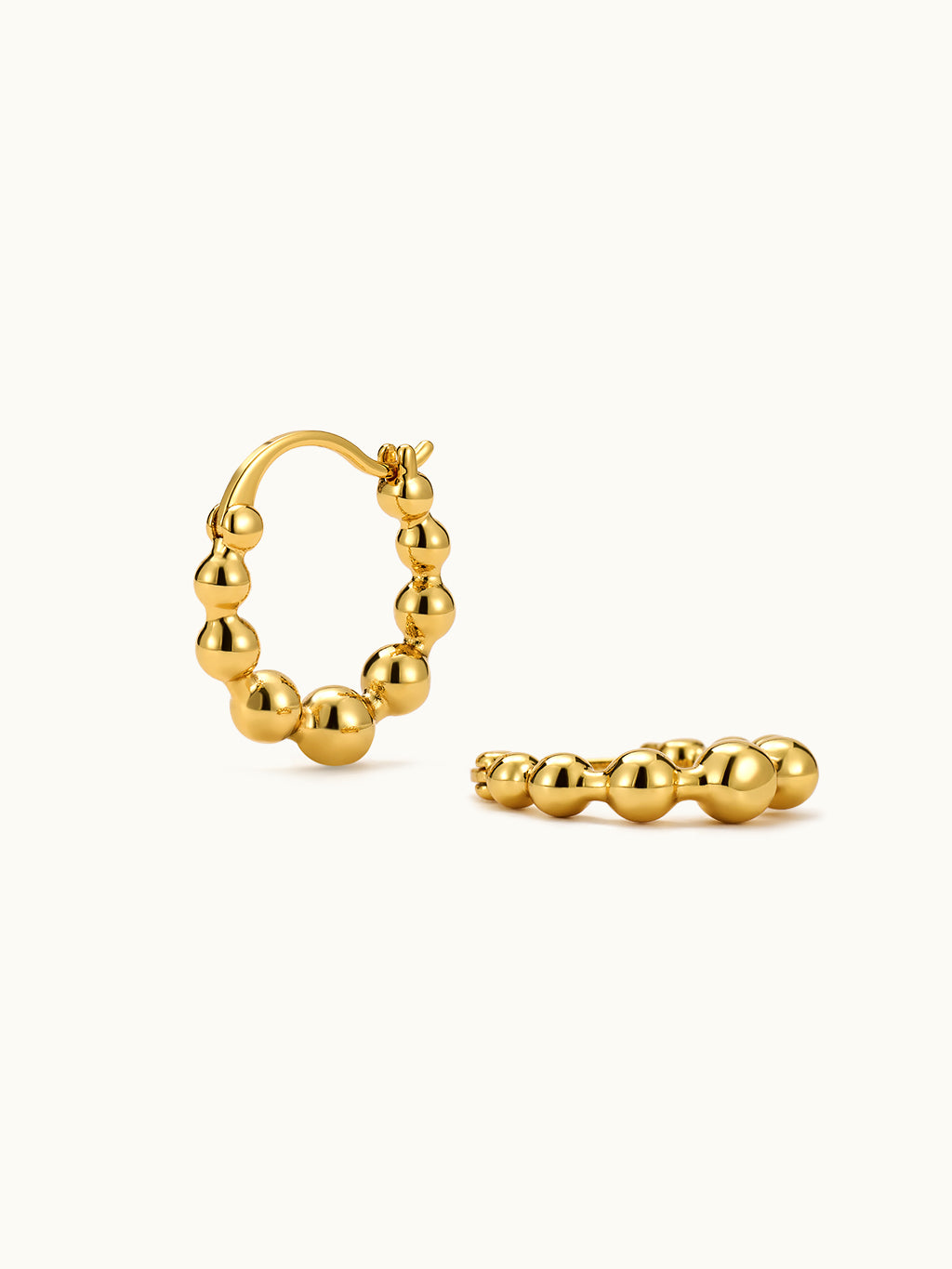 Setzen Sie mit Graduated Bubble Sphere Hoops ein starkes Statement. Mit ihrem verspielten Design aus abgestuften Kugeln verleihen diese Creolen jedem Look Volumen und modernes Flair.