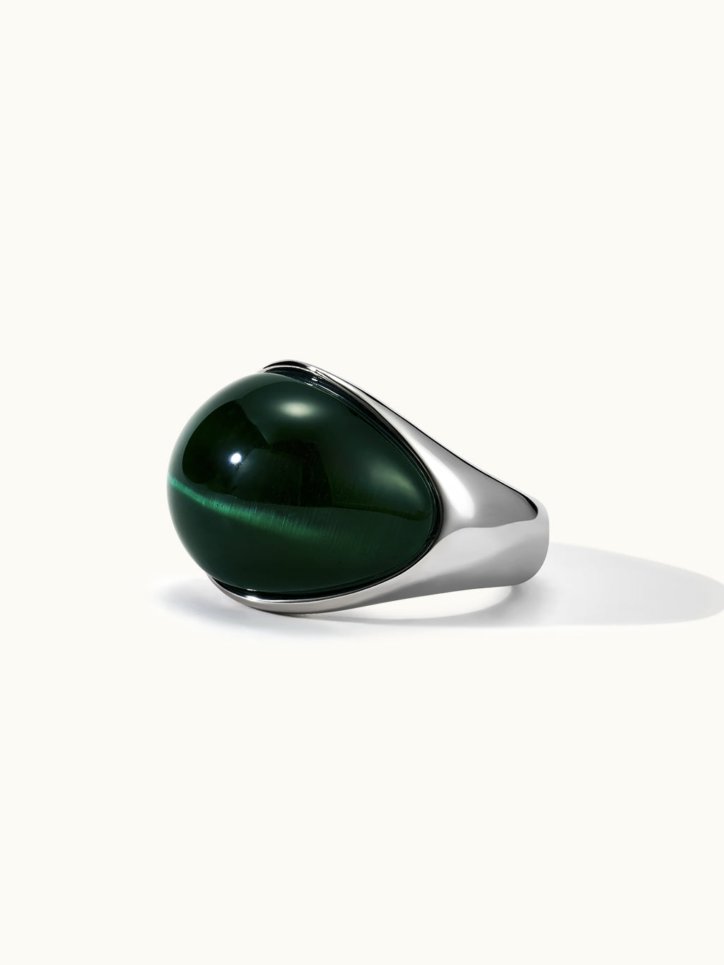 Werten Sie Ihren Stil mit dem Green Cat Eye Stone Silber Ring auf. Mit einem faszinierenden grünen Katzenaugenstein in glattem Silber für einen modernen, mystischen Look.