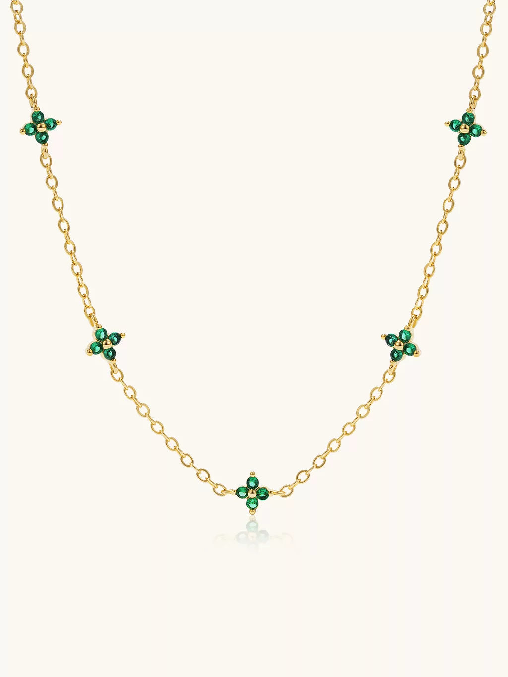 Diese wunderschöne Blumenkette ist handgefertigt aus 18K vergoldetem Edelstahl und beeindruckt mit ihrem zarten Blumenanhänger und den funkelnden Zirkoniasteinen.