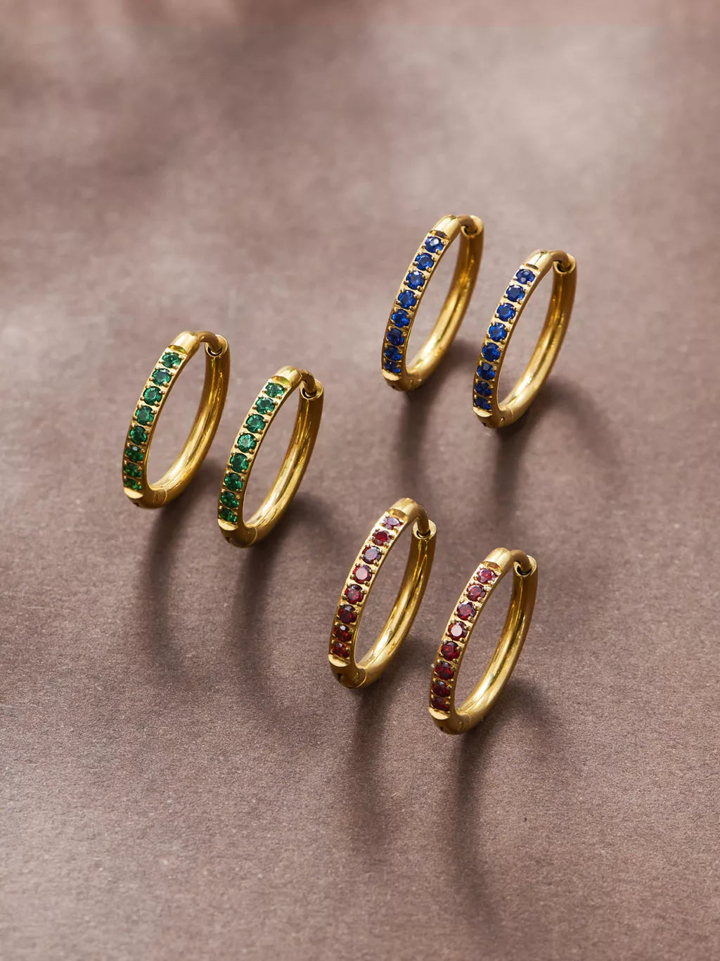 Die Green Gemstone Eternity Hoop Ohrringe bestechen durch schillernde grüne Steine in einem durchgehenden Creolendesign und vereinen zeitlose Eleganz mit lebendigem Charme.