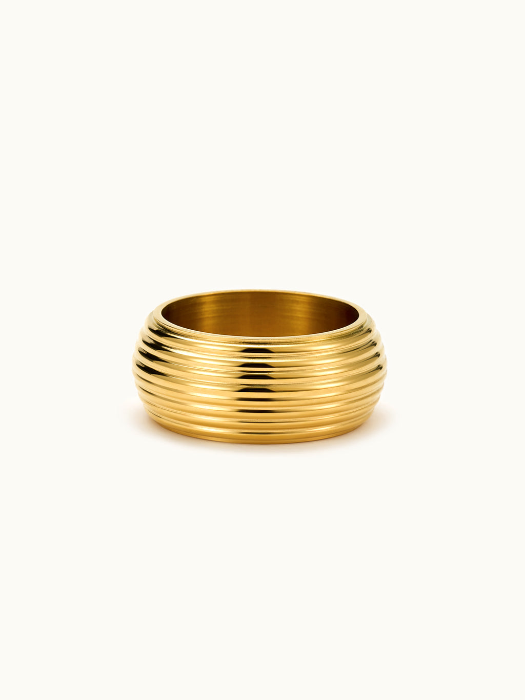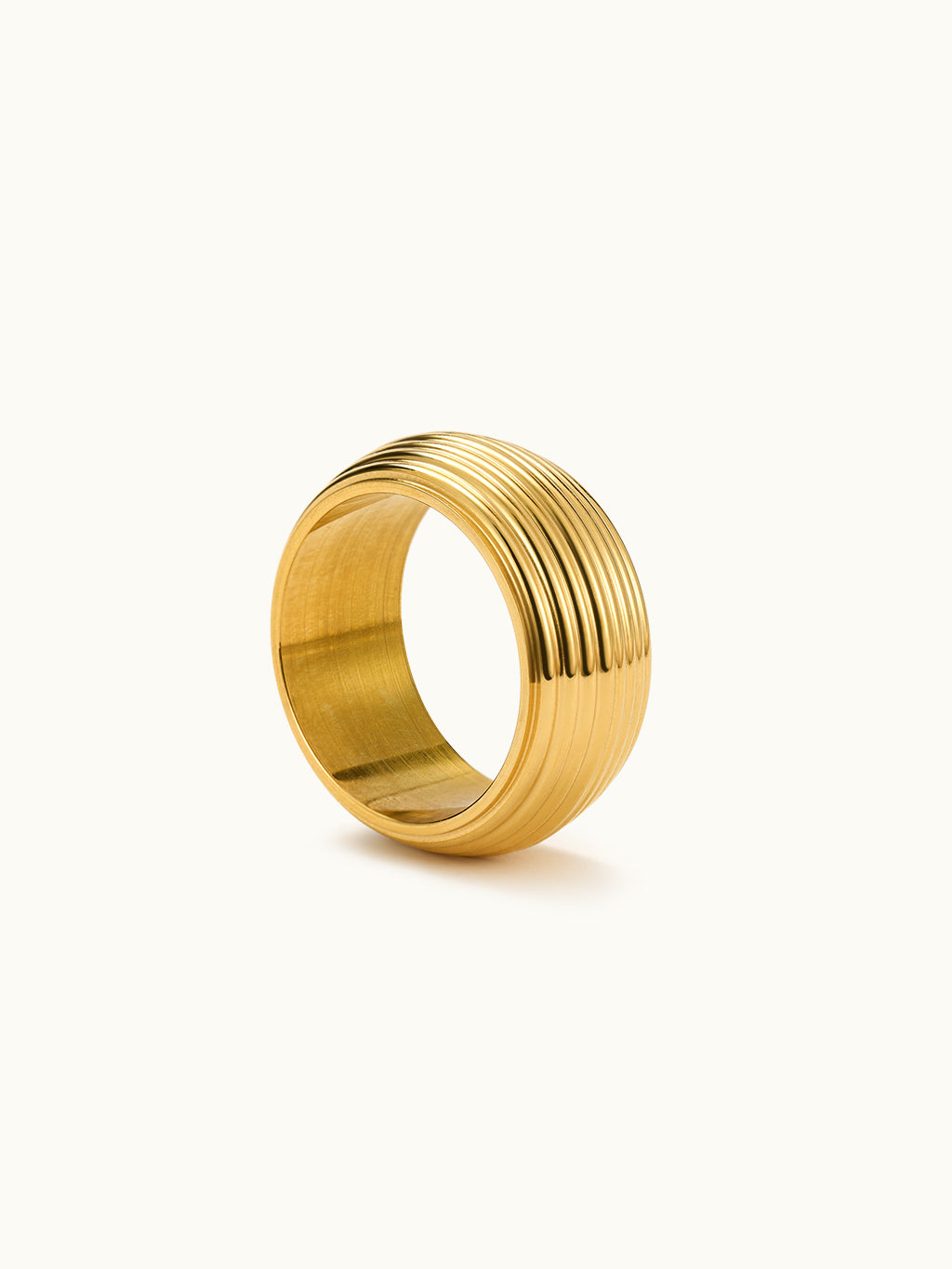 Der Layered Ribbed Band Ring besticht durch ein modernes, strukturiertes Design mit gestapelten gerippten Bändern. Dieser Ring ist elegant und langlebig und eignet sich perfekt für den Alltag oder besondere Anlässe.