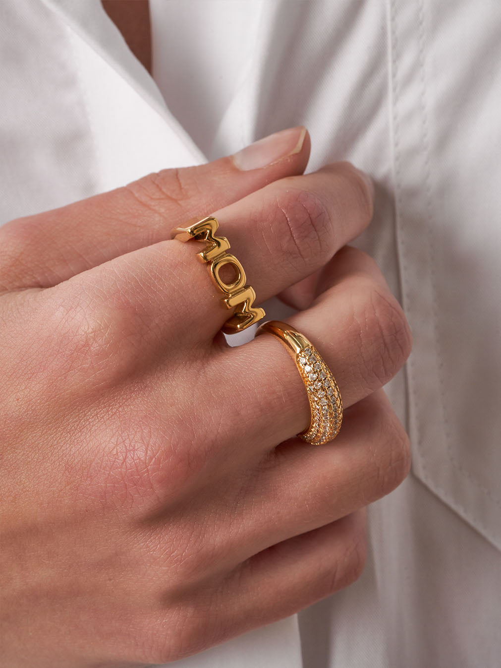 Der Letter MOM Ring ist eine herzliche Hommage an die Mutterschaft. Dieser mit Sorgfalt gefertigte personalisierte Ring zeigt die Buchstaben „MOM“ in einem eleganten, stilvollen Design und ist damit das perfekte Geschenk für Mütter.