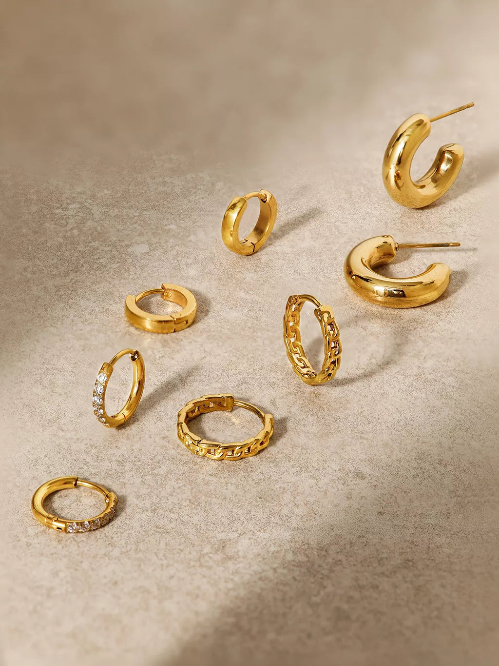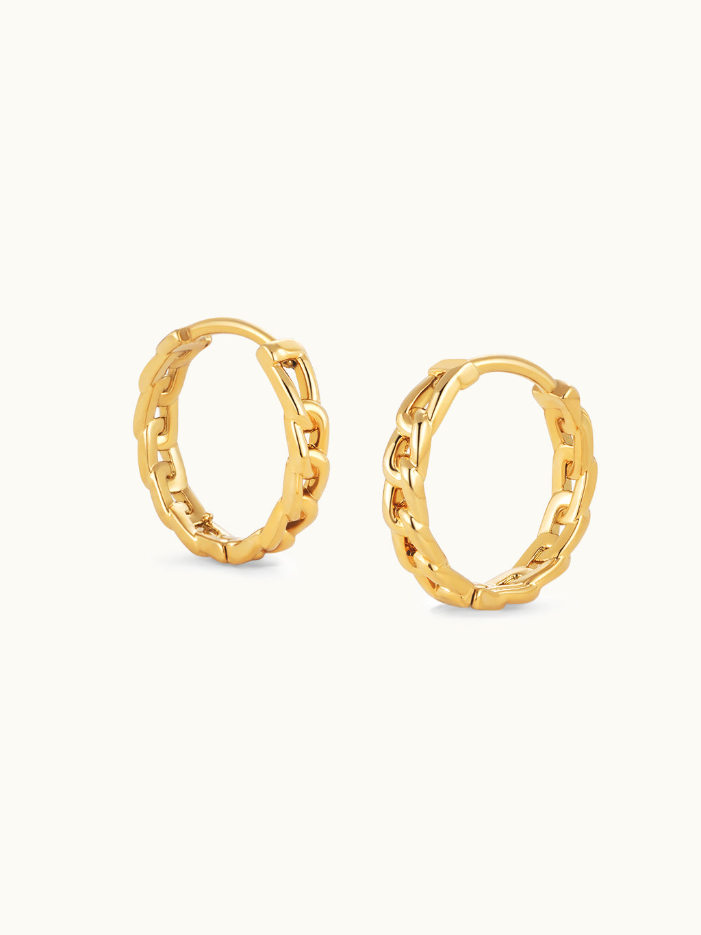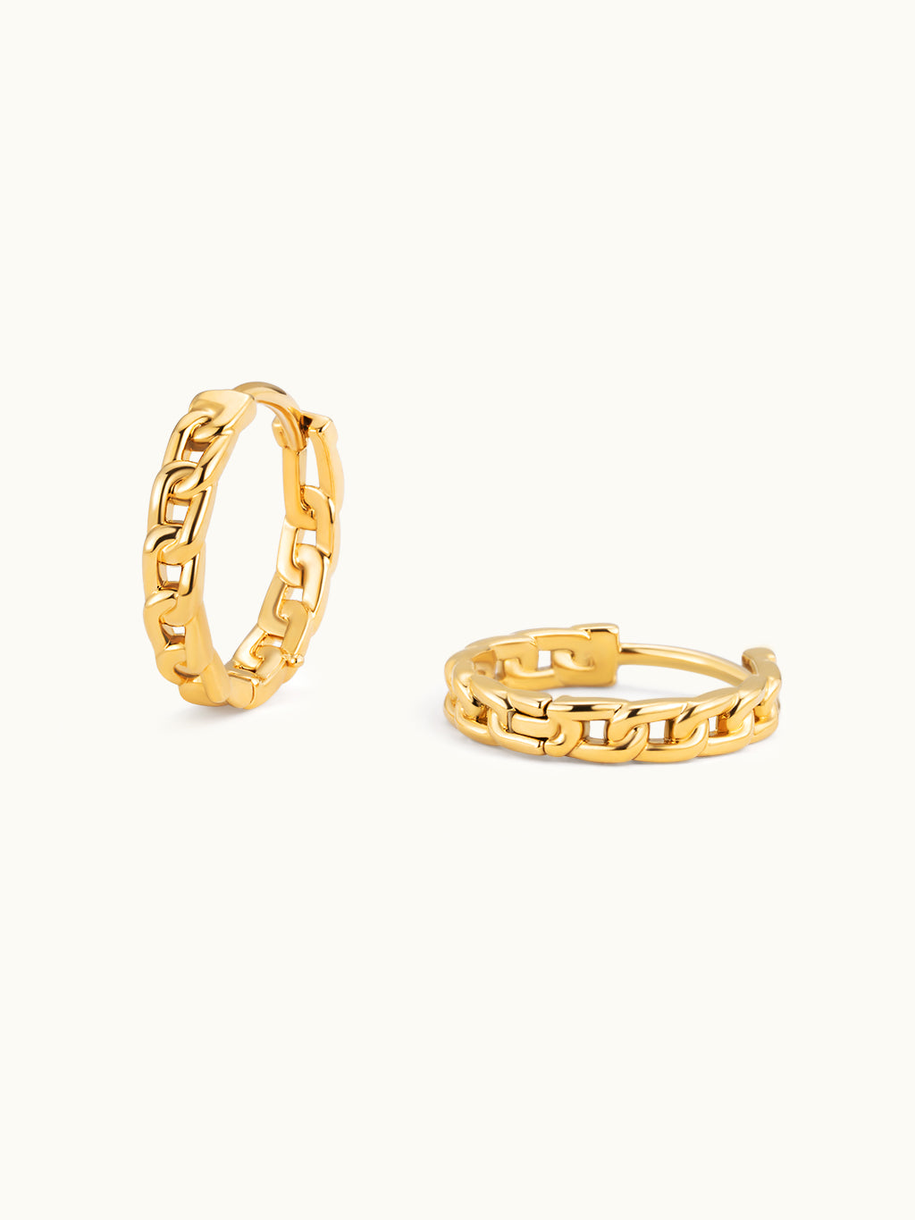 Mit Links Band Hoops verleihen Sie Ihrer Schmuckkollektion ein mutiges Statement. Diese auffälligen Ohrringe zeichnen sich durch ein innovatives Kettenglieddesign aus und bieten eine stilvolle Mischung aus modernem Stil und klassischer Eleganz. Diese Creolen eignen sich perfekt für lässige und formelle Looks, sind vielseitig und ziehen garantiert die Blicke auf sich.
