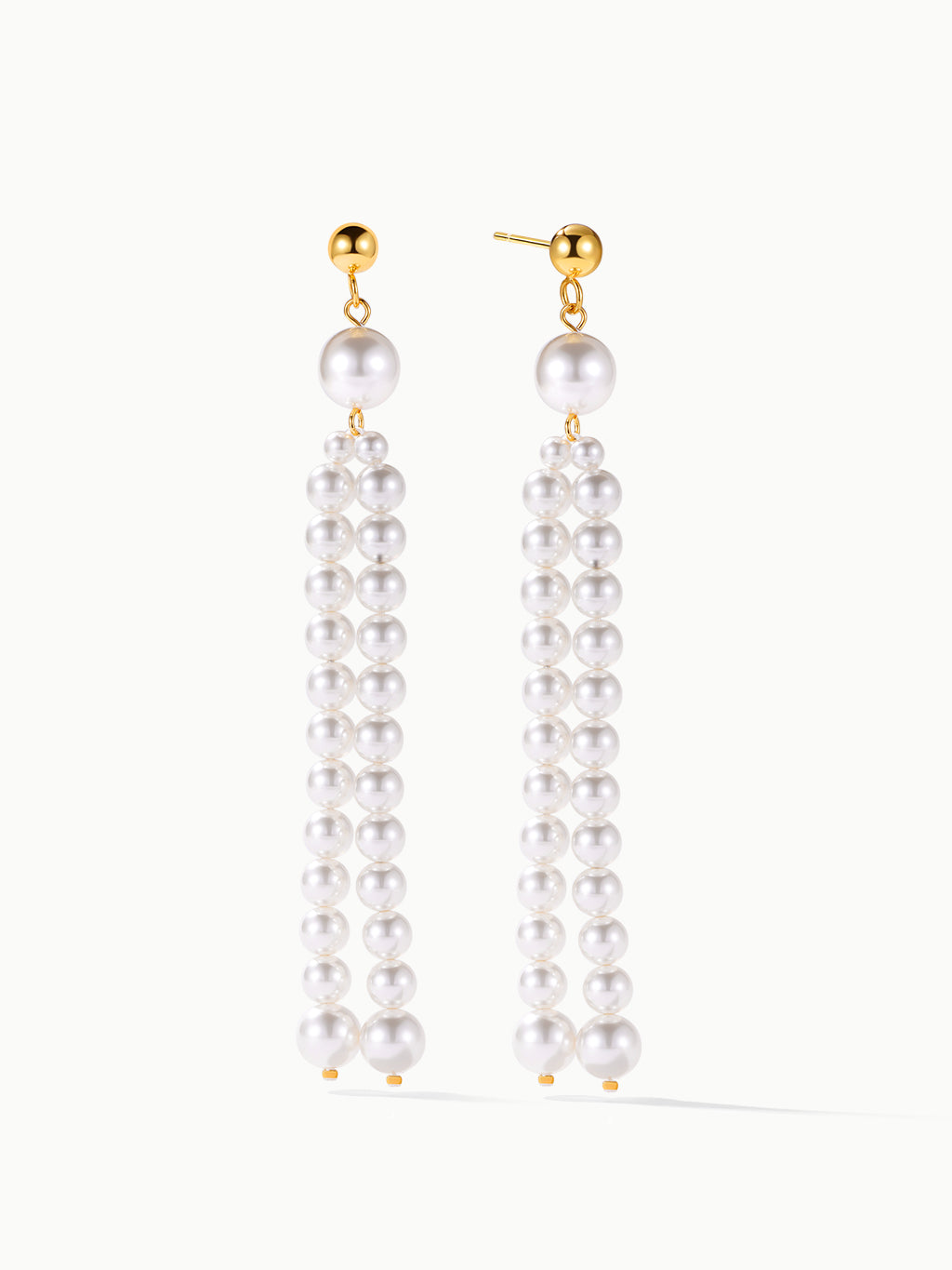 Unterstreichen Sie Ihre Eleganz mit Long Dangle Drop Pearl Ohrringe. Mit ihren glänzenden Perlen und ihrem eleganten Design sind sie perfekt für besondere Anlässe oder den Glamour des Alltags.
