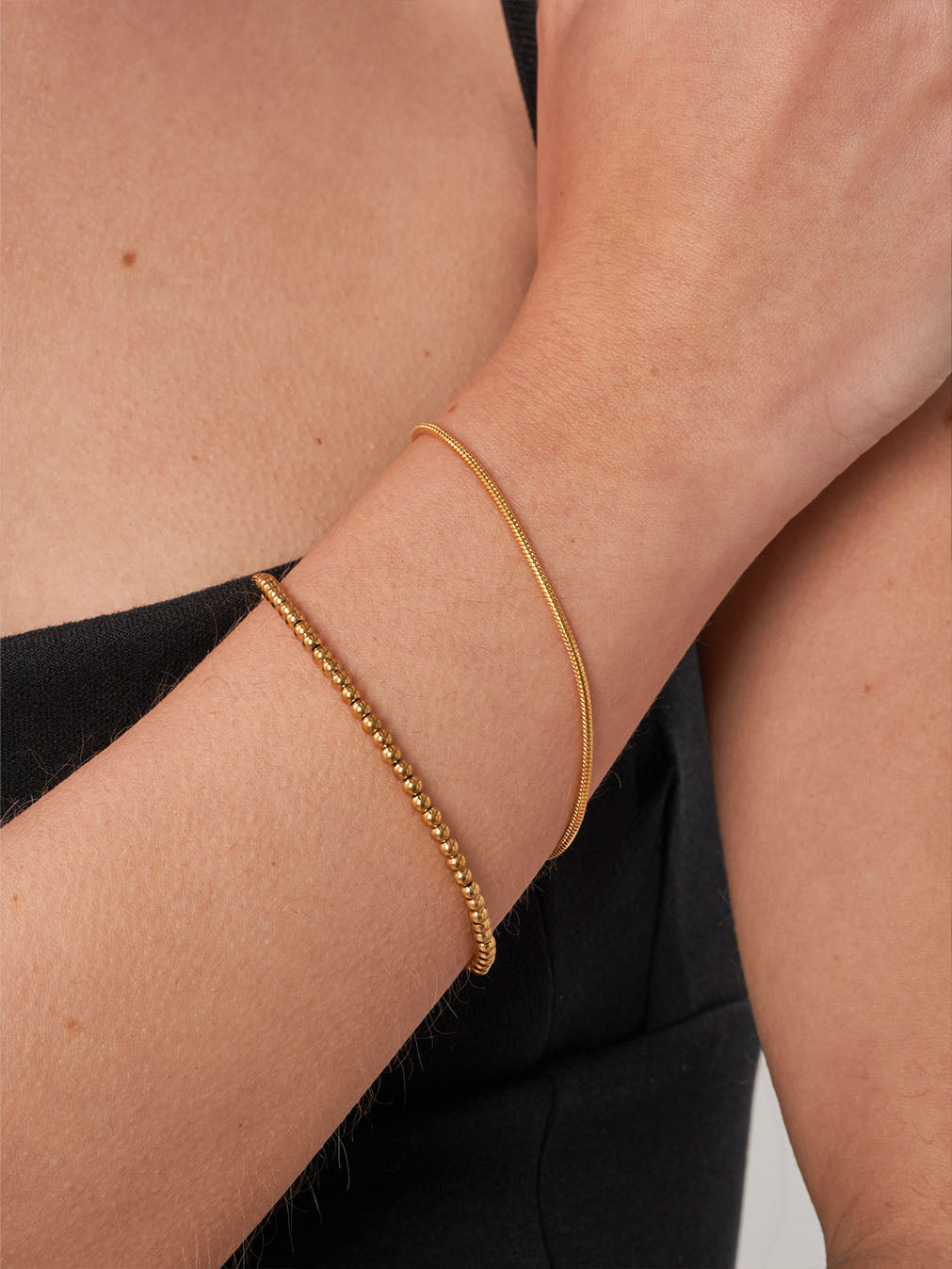 Das Loop Sleek Bracelet Gold – ein Meisterwerk der Eleganz. Mit seinem minimalistischen Design und der 18K Vergoldung strahlt es zeitlose Schönheit aus. Das handgefertigte Armband ist wasserfest, allergiefreundlich.