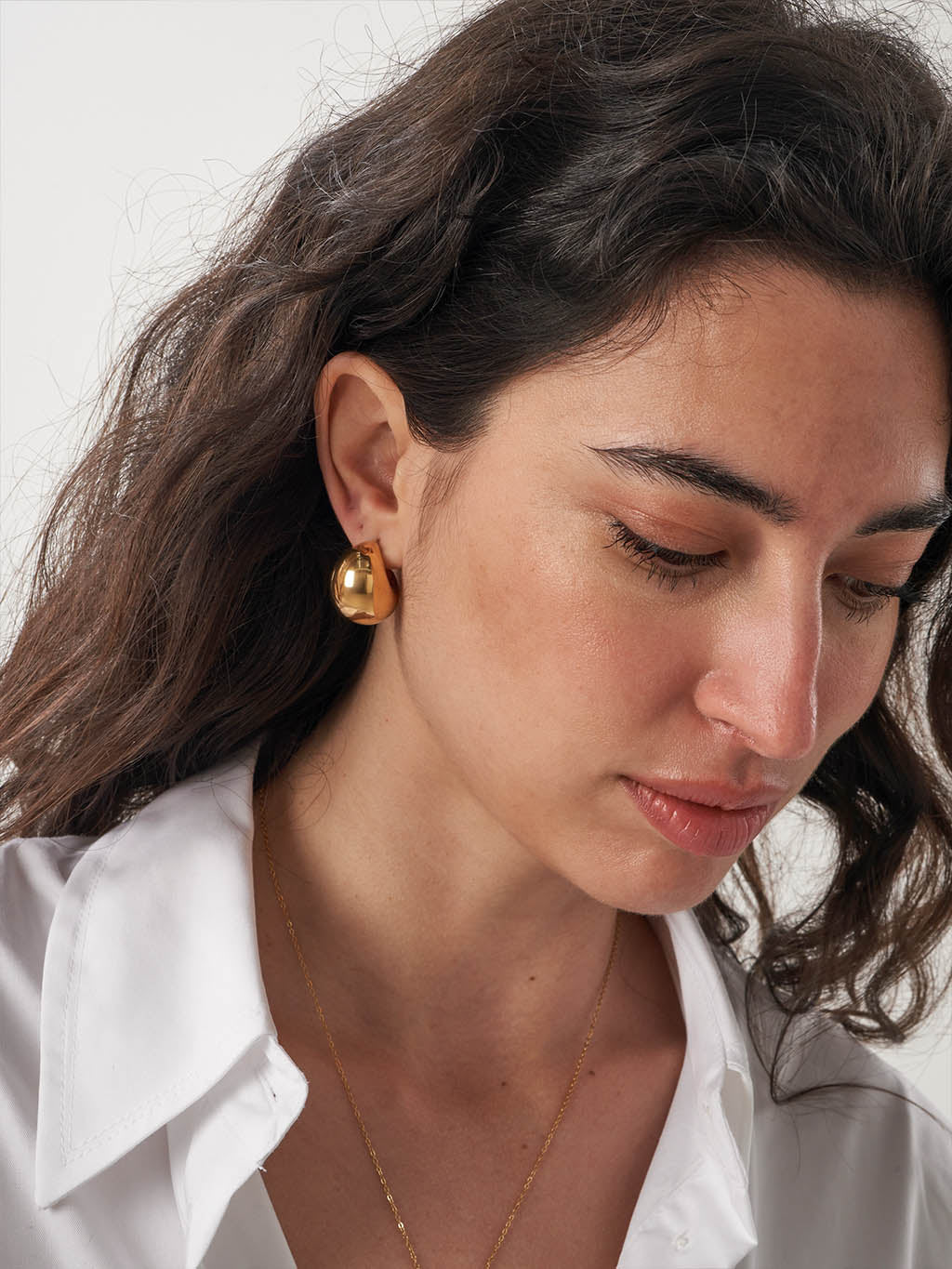 Die Mini Chunky Dome Ohrringe zeichnen sich durch ein auffälliges und dennoch kompaktes Design mit polierter Oberfläche aus und verleihen jedem Outfit eine moderne und schicke Note.
