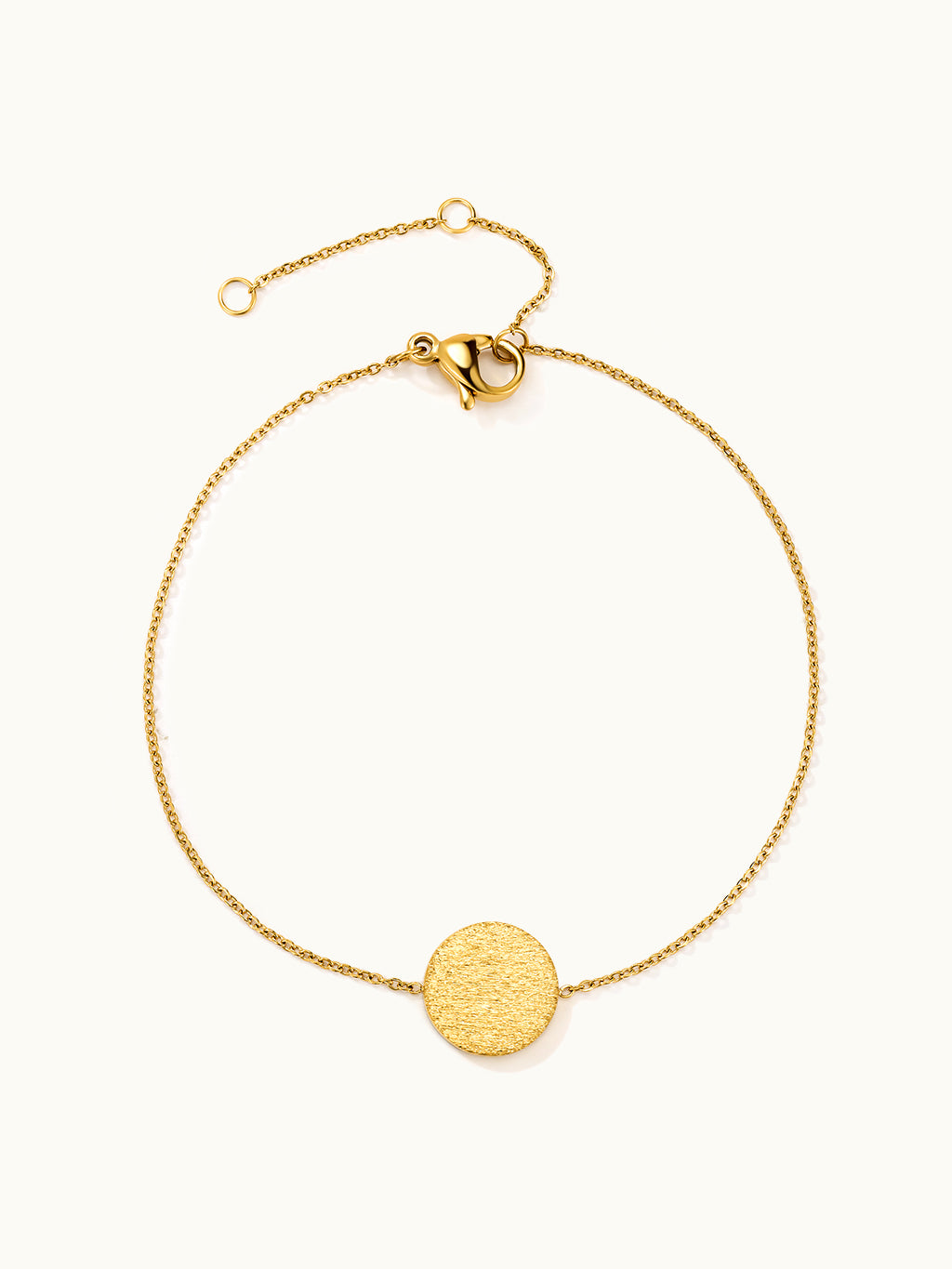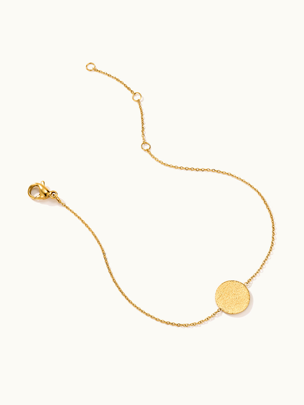 Das Minimal Single Disc Armband bietet schlichte Schlichtheit mit einem polierten Scheibenanhänger, perfekt für den Alltag oder zum Kombinieren mit anderen Armbändern.