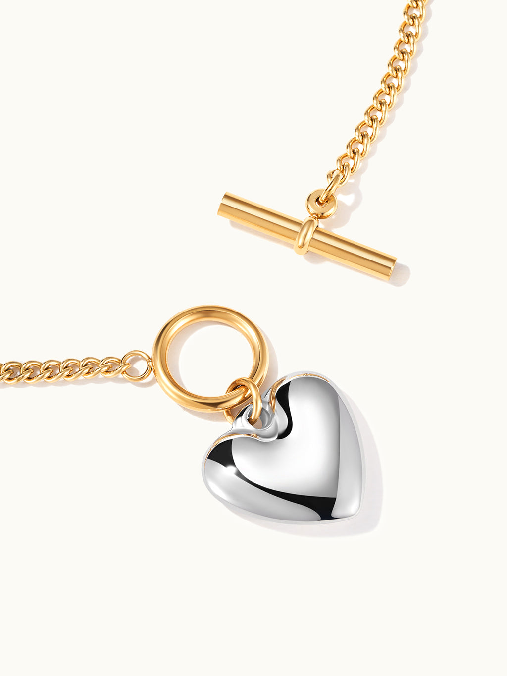 Zeigen Sie Ihre Liebe mit der Mix Metal Heart Kette. Das bezaubernde Herzdesign aus verschiedenen Metallen verleiht ihr einen modernen und vielseitigen Look. Perfekt für den Alltag oder besondere Momente.