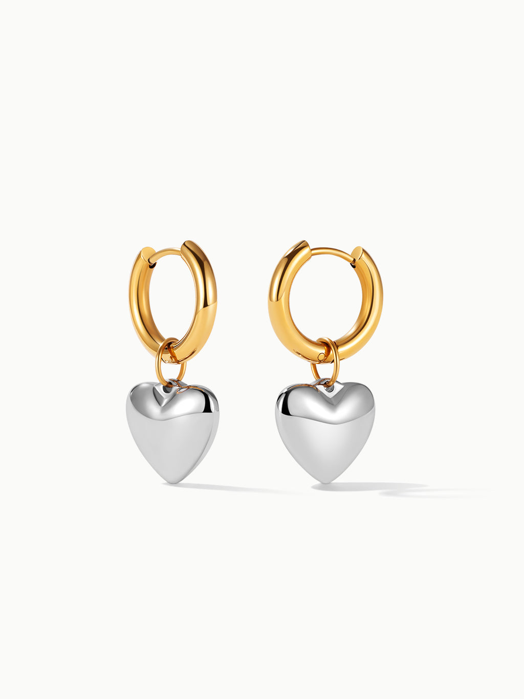 Mixed Metal Puffy Heart Huggie Ohrringe