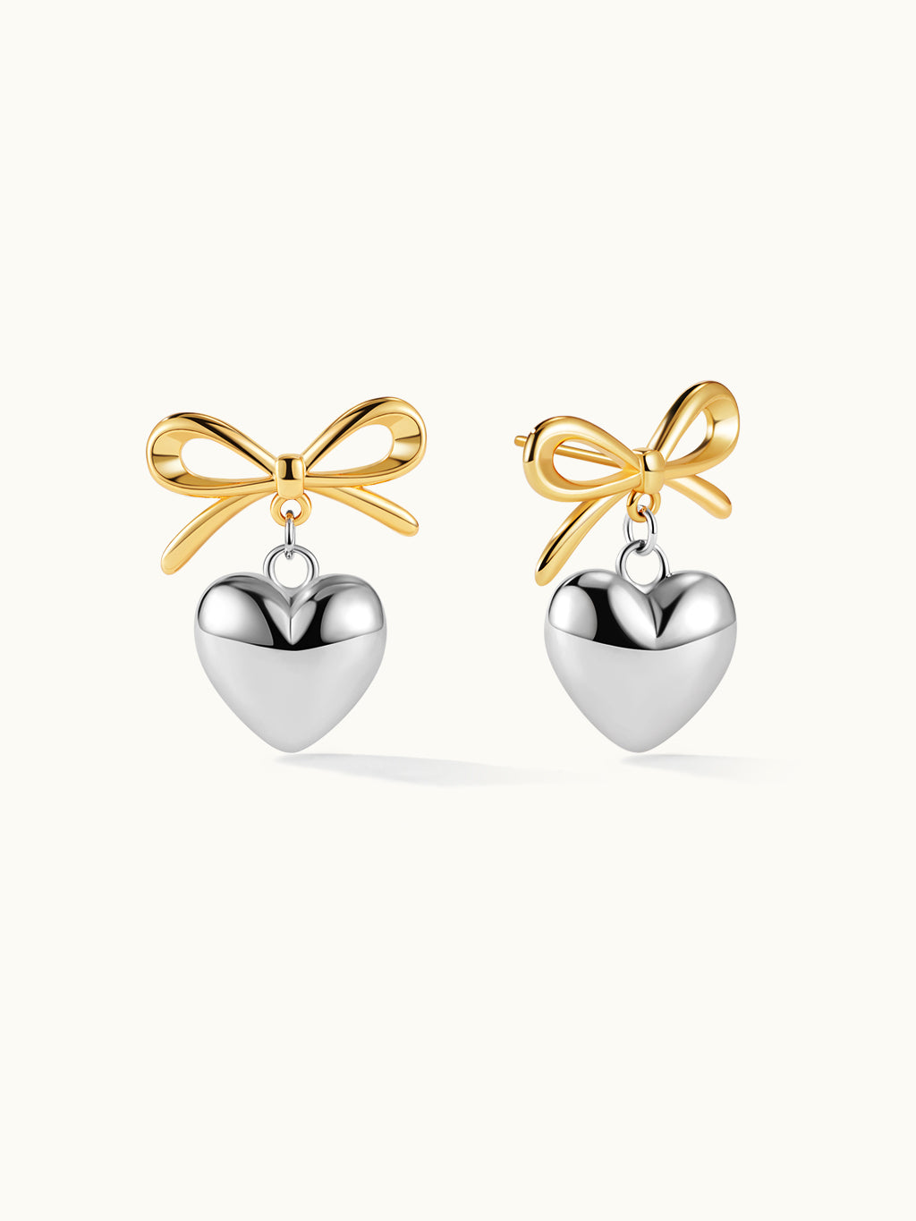 Die Mixed Metal Ribbon Heart Ohrringe vereinen elegante Silber- und Goldtöne in einem zarten Herzdesign und setzen so ein romantisches und modernes Stil-Statement.
