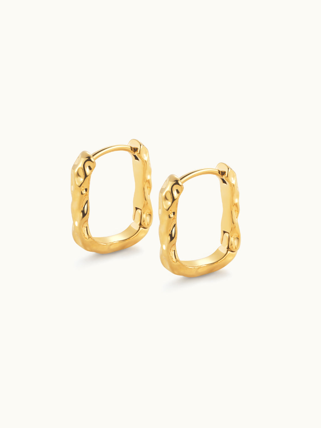 Die Modern Textured Hoop Ohrringe verleihen einem klassischen Design eine moderne Note. Mit ihrer kräftigen, strukturierten Oberfläche und der schlanken Creolenform sind diese Ohrringe perfekt, um jedem Outfit eine modische Note zu verleihen. Sie sind leicht und vielseitig und passen nahtlos vom Tag in die Nacht, was sie zu einem unverzichtbaren Accessoire für moderne Schmuckliebhaber macht.