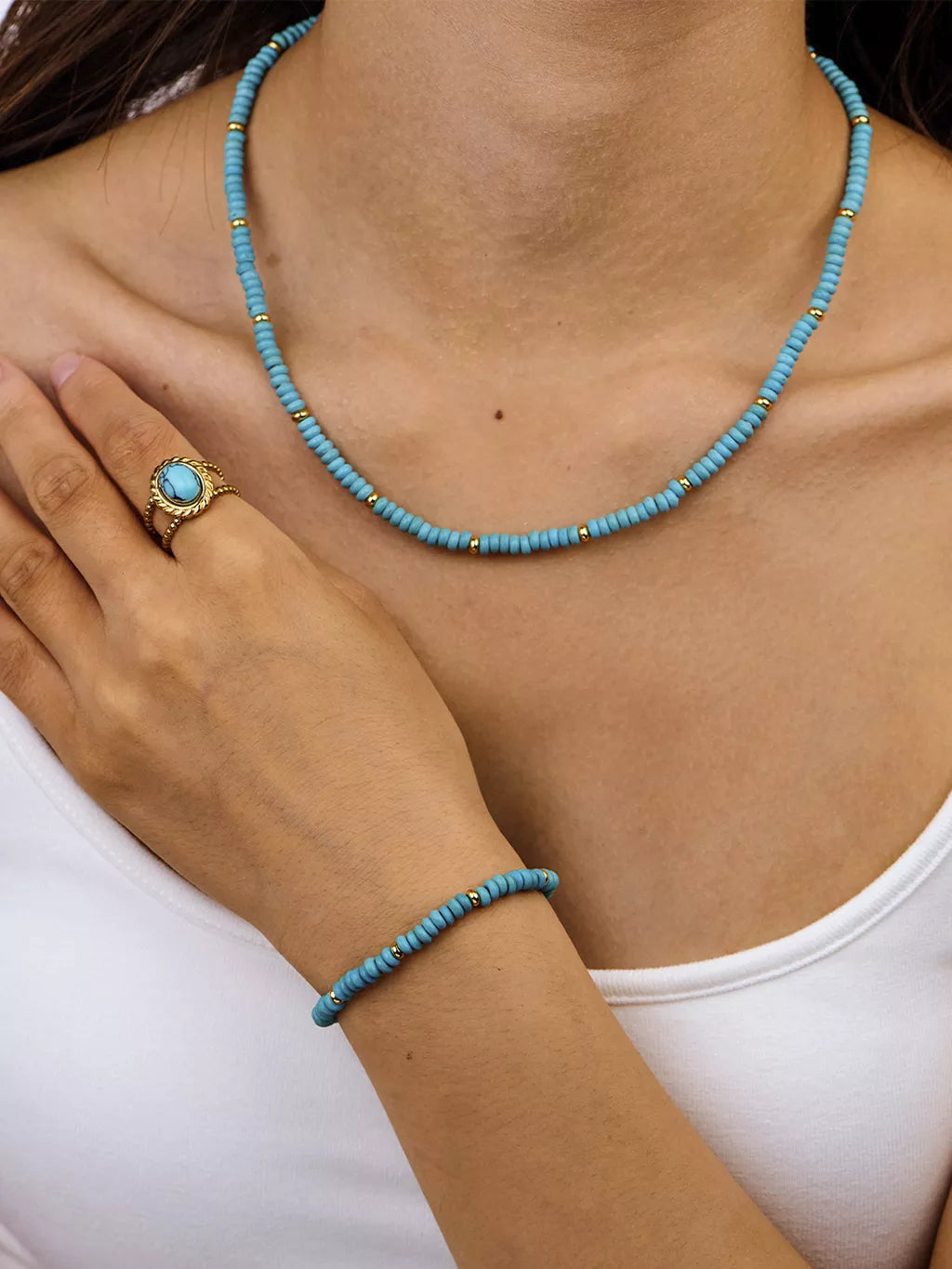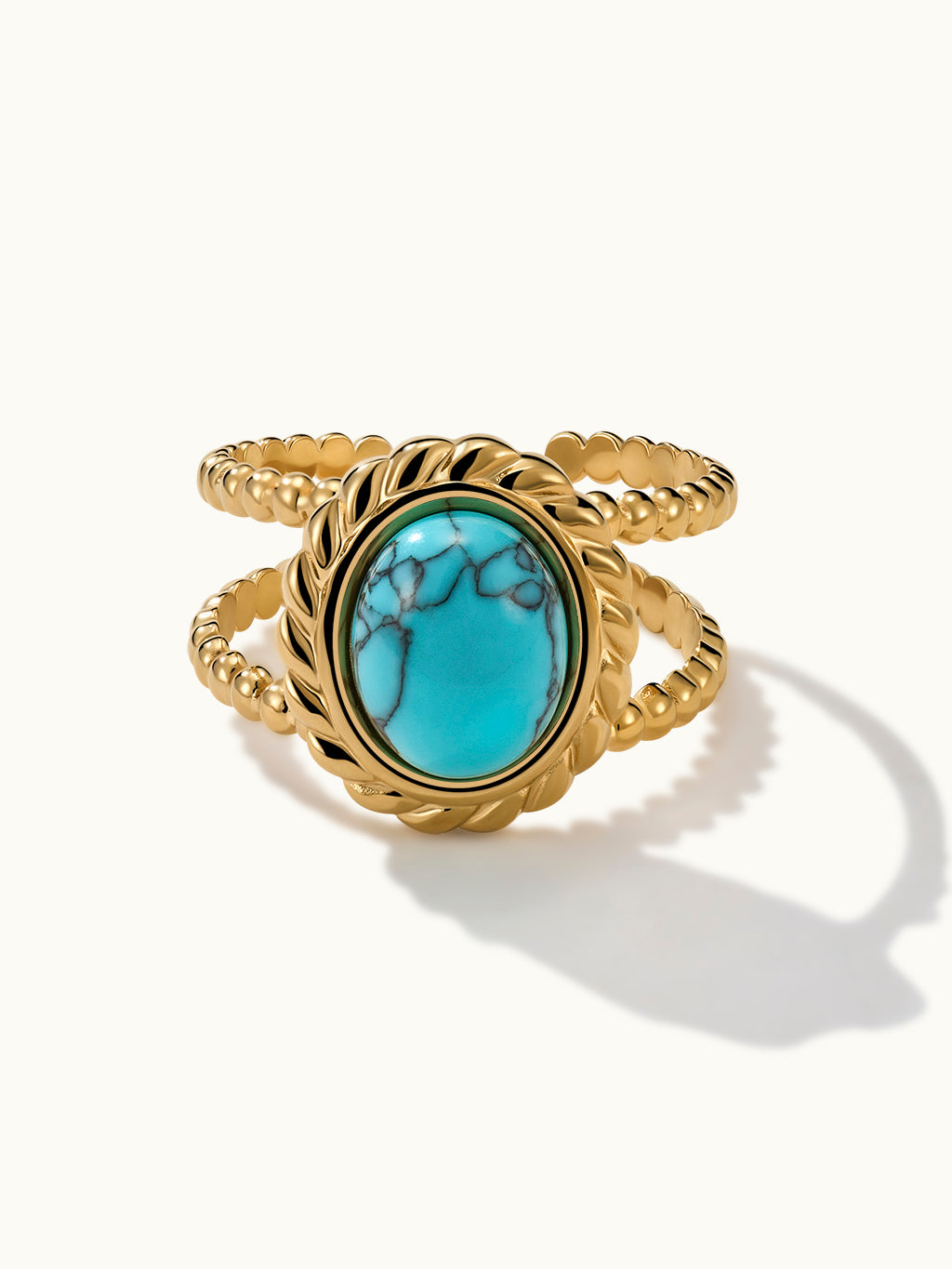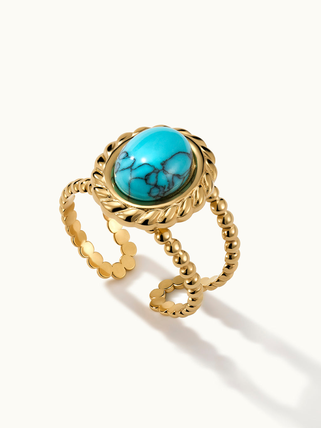 Der Oval Turquoise Gemstone Open Ring präsentiert einen leuchtenden türkisfarbenen Stein in einem eleganten offenen Banddesign und verbindet Boho-Charme mit moderner Eleganz.