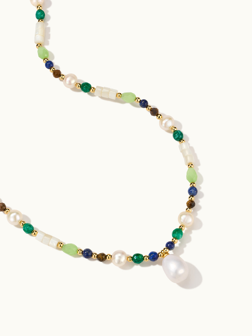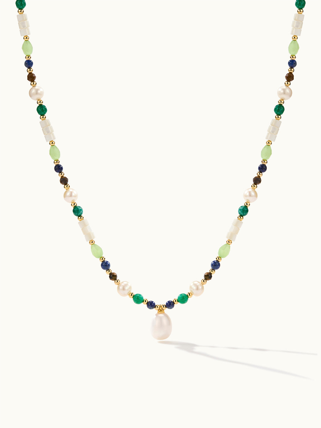 Die Pearl Agate Smoky Quartz Kette vereint klassische Perlen, erdigen Achat und Rauchquarz für einen ausgewogenen, eleganten Look. Ein vielseitiges Schmuckstück für lässige und formelle Anlässe.