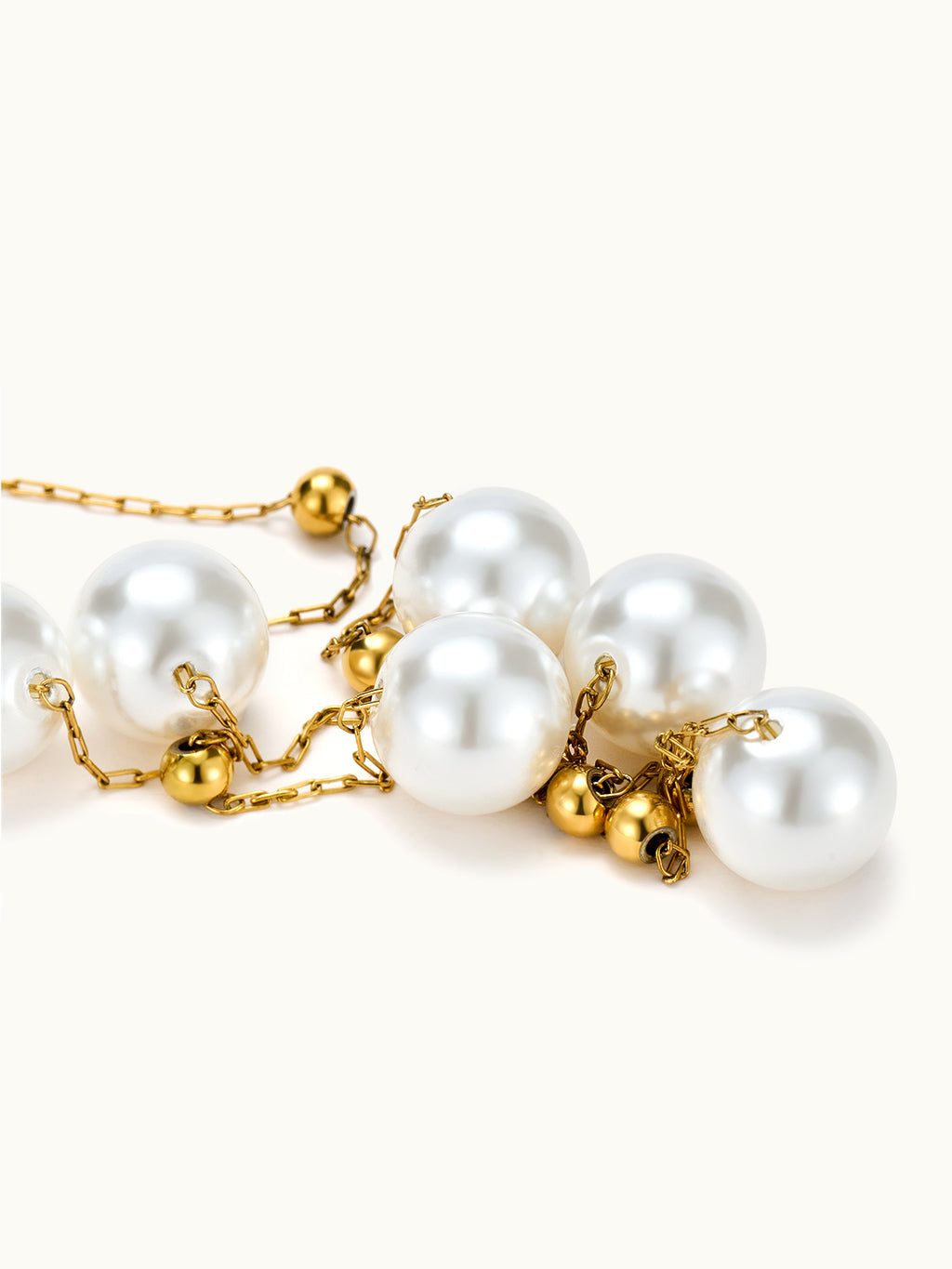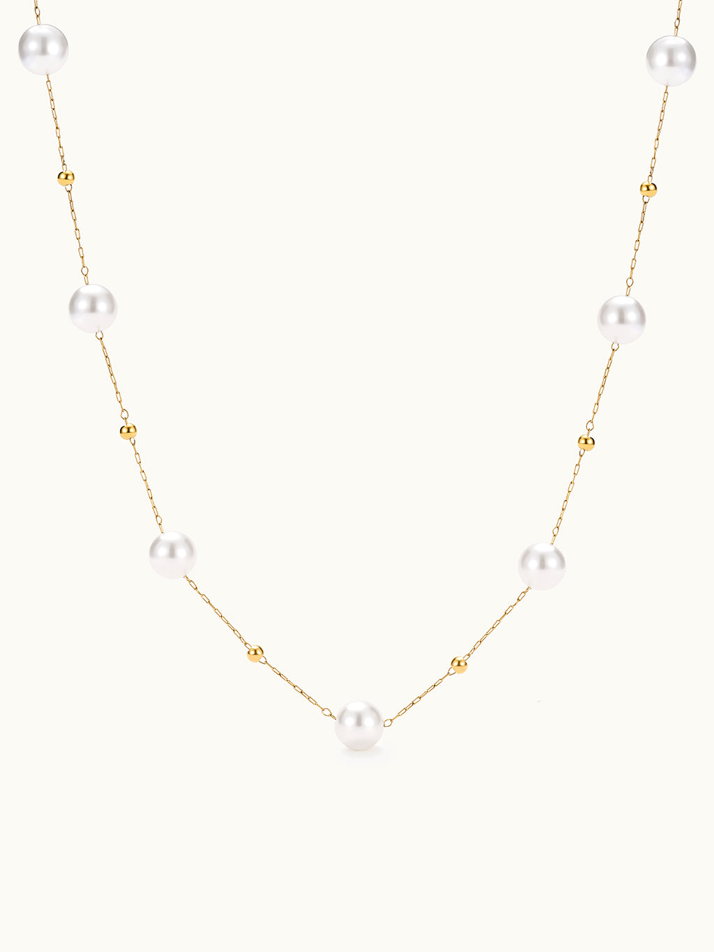 Werten Sie Ihren Look mit der Pearl Station Kette auf. Mit gleichmäßig angeordneten, glänzenden Perlen verleiht dieses zeitlose Schmuckstück jedem Outfit Eleganz, egal ob Tag oder Nacht.