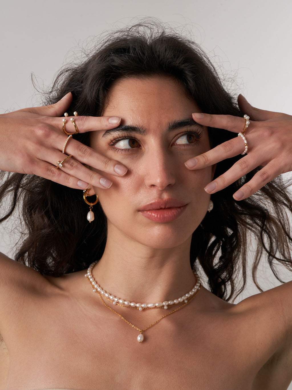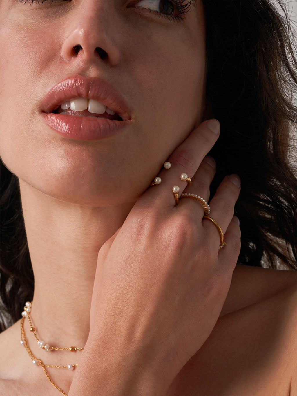 Dieser Pearl Team Ring von Vonaura ist ein elegantes Accessoire, das jedem Outfit eine stilvolle Note verleiht. Der Ring besteht aus hochwertigem Metall und hat eine glänzende Goldfarbe, die ihm ein luxuriöses Aussehen verleiht. Die schöne, runde Perle in der Mitte des Rings ist ein echter Hingucker und verleiht dem Ring eine klassische und zeitlose Eleganz.