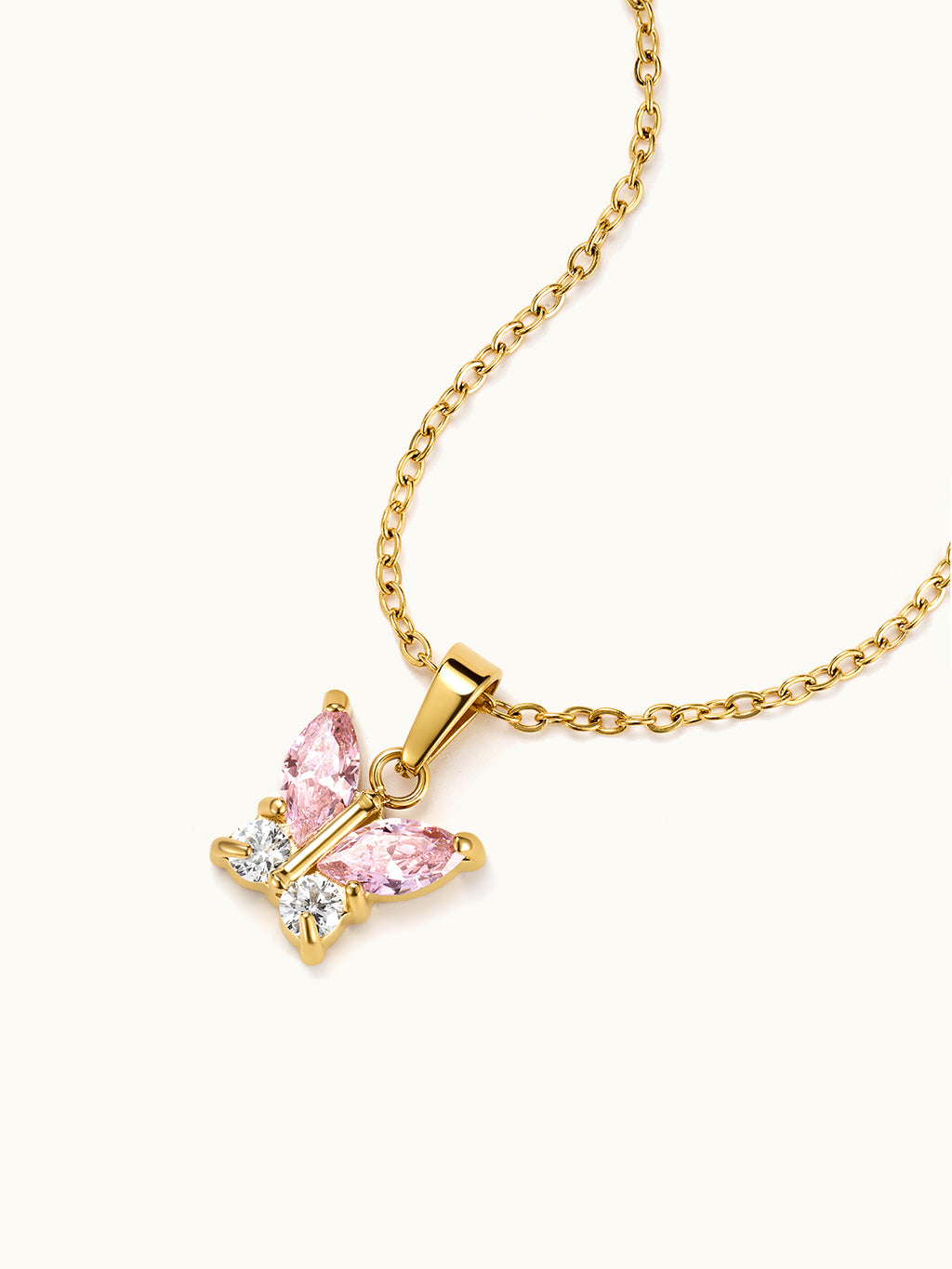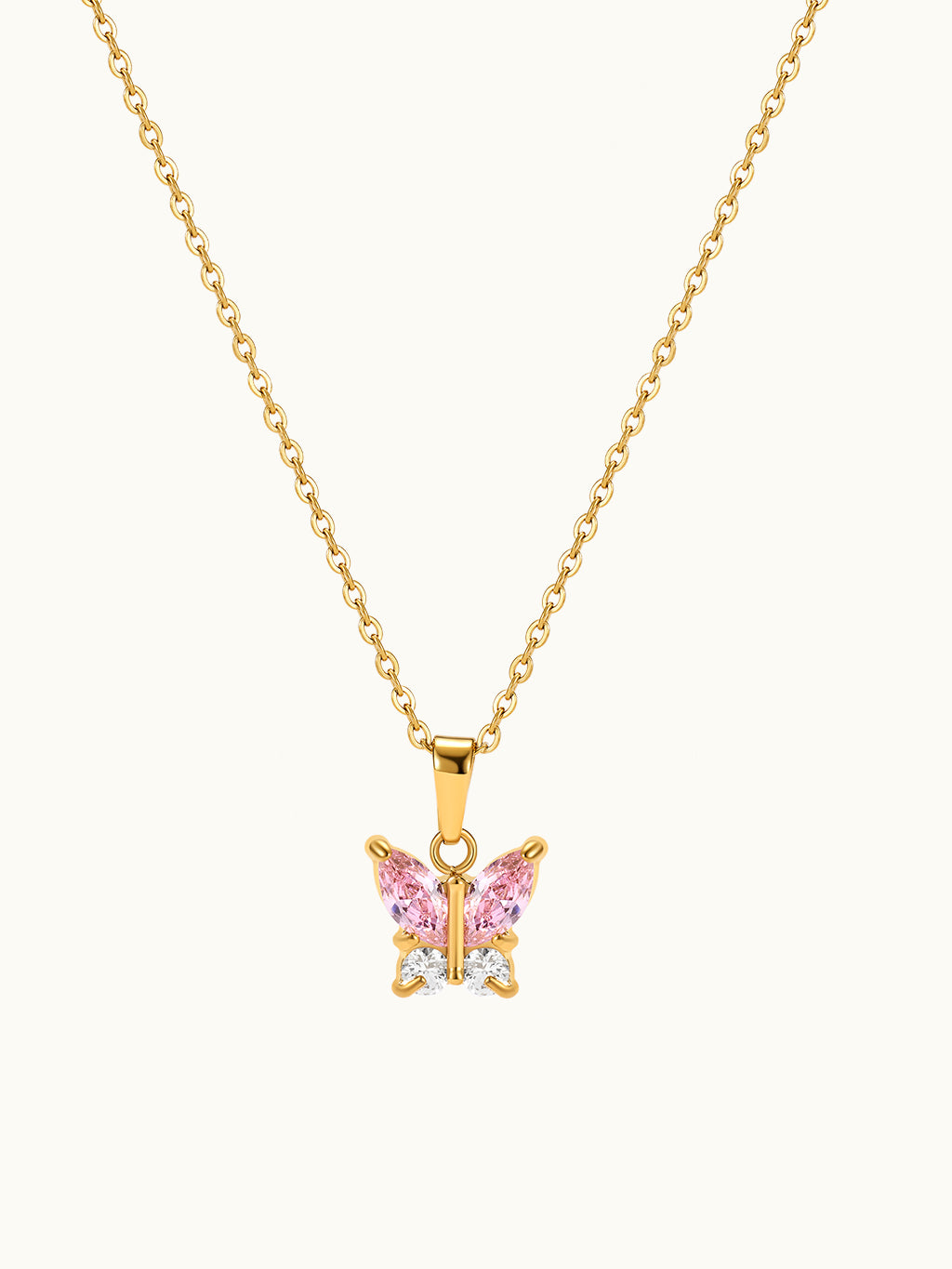 Die Pink Butterfly Kette verfügt über einen zarten Schmetterlingsanhänger in sanften Rosatönen, der jedem Outfit eine verspielte und feminine Note verleiht. Ein perfektes Accessoire für alle Gelegenheiten.