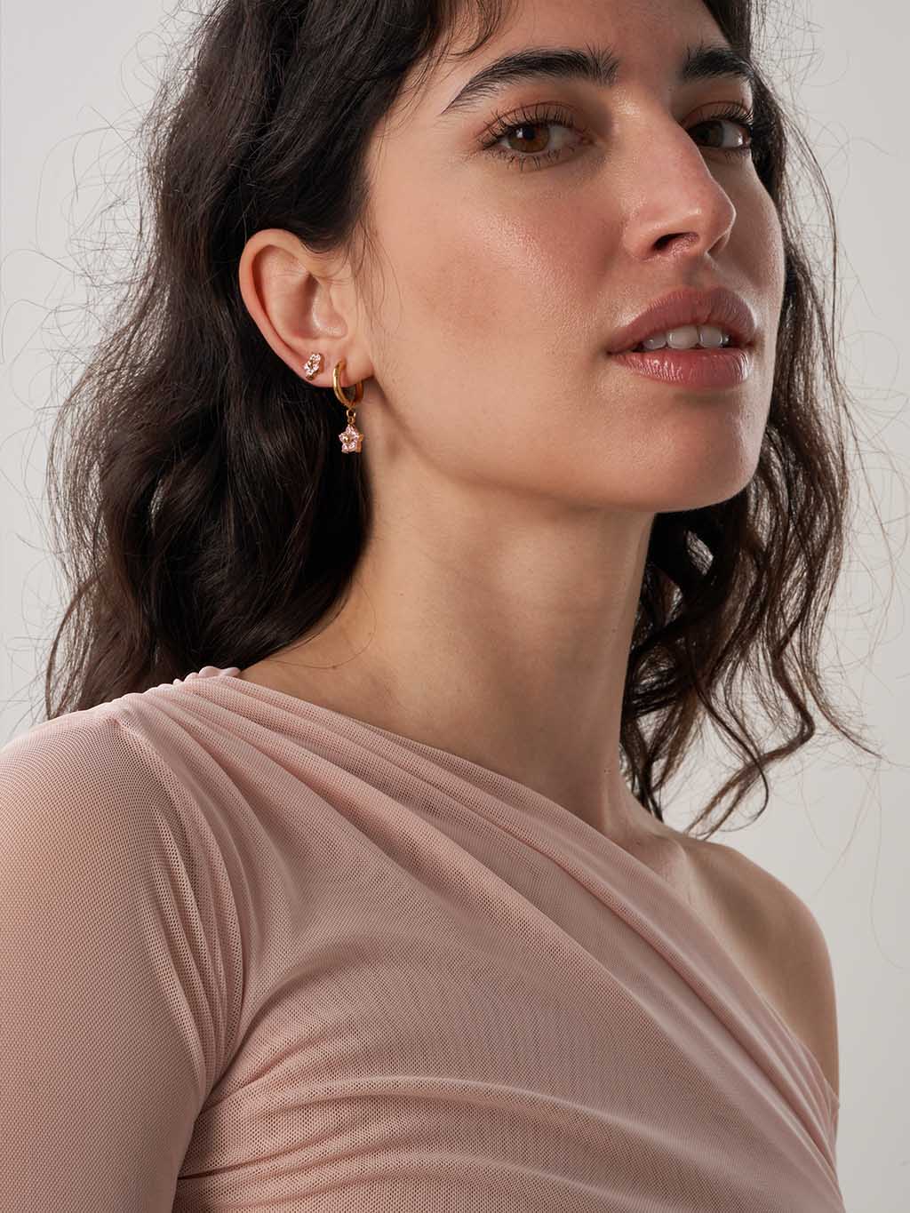 Mit diesen Creolen in Pink Little Flower verleihen Sie Ihrem Outfit einen verspielten Farbtupfer. Schimmernde goldene Creolen mit zarten rosa Blüten akzentuieren jedes Outfit.