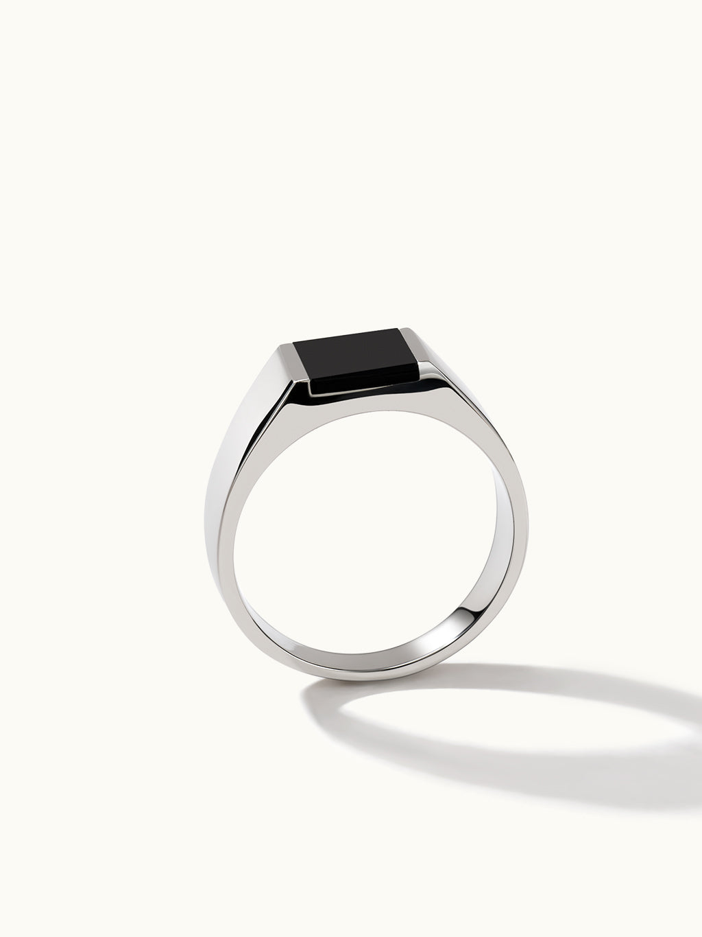 Der Rectangular Black Onyx Ring strahlt kühne Eleganz aus. Mit einem eleganten, rechteckigen schwarzen Onyxstein in einem polierten Band für einen markanten Look.