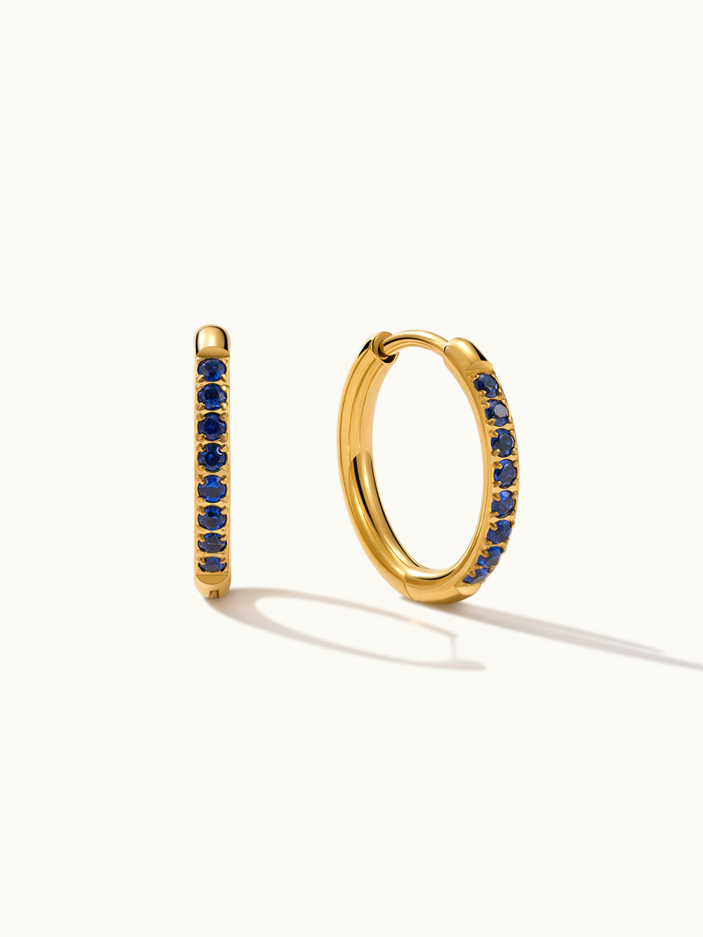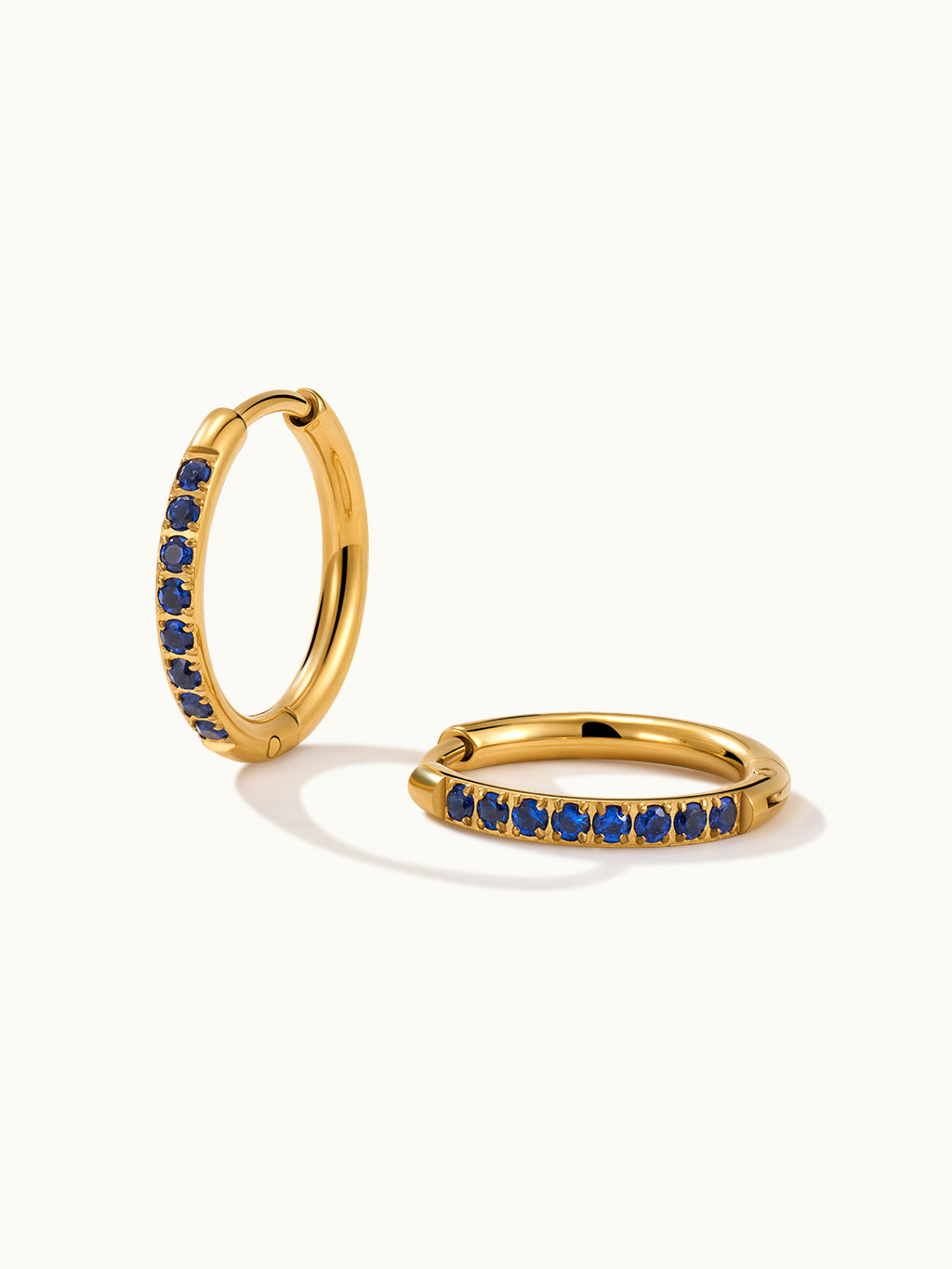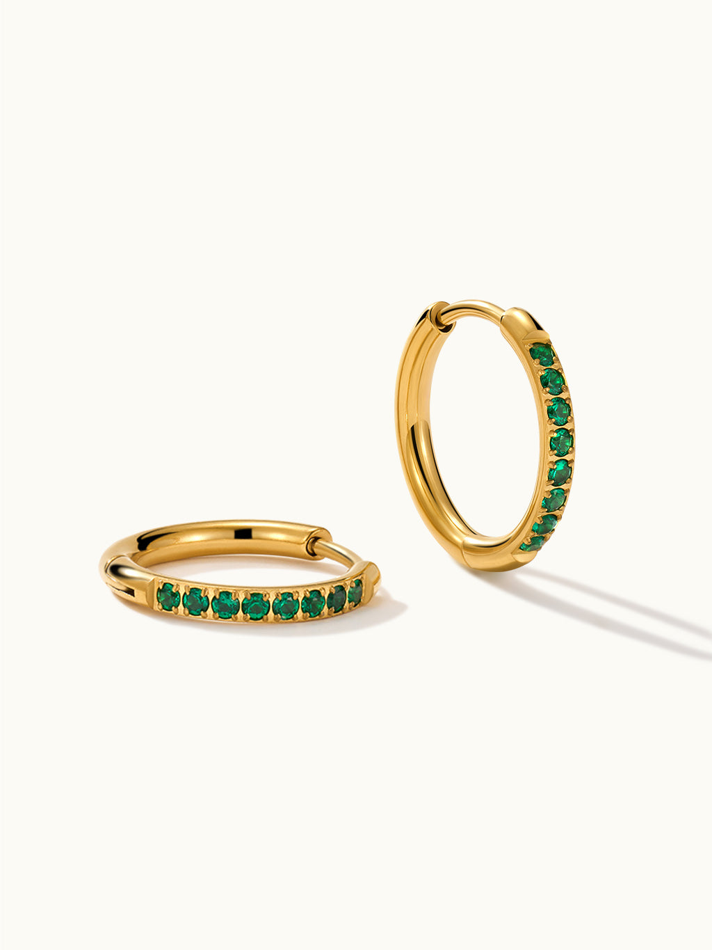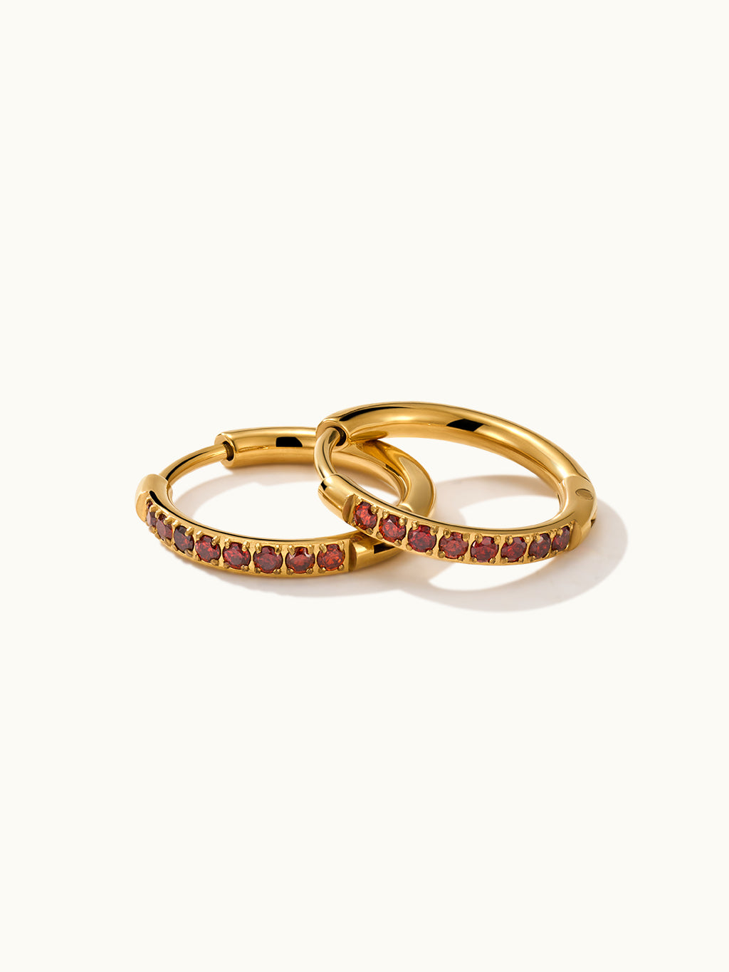 Die Red Gemstone Eternity Hoop Ohrringe präsentieren eine Reihe leuchtend roter Steine in zeitlosen Creolen und bieten kühne Eleganz und alltäglichen Luxus.