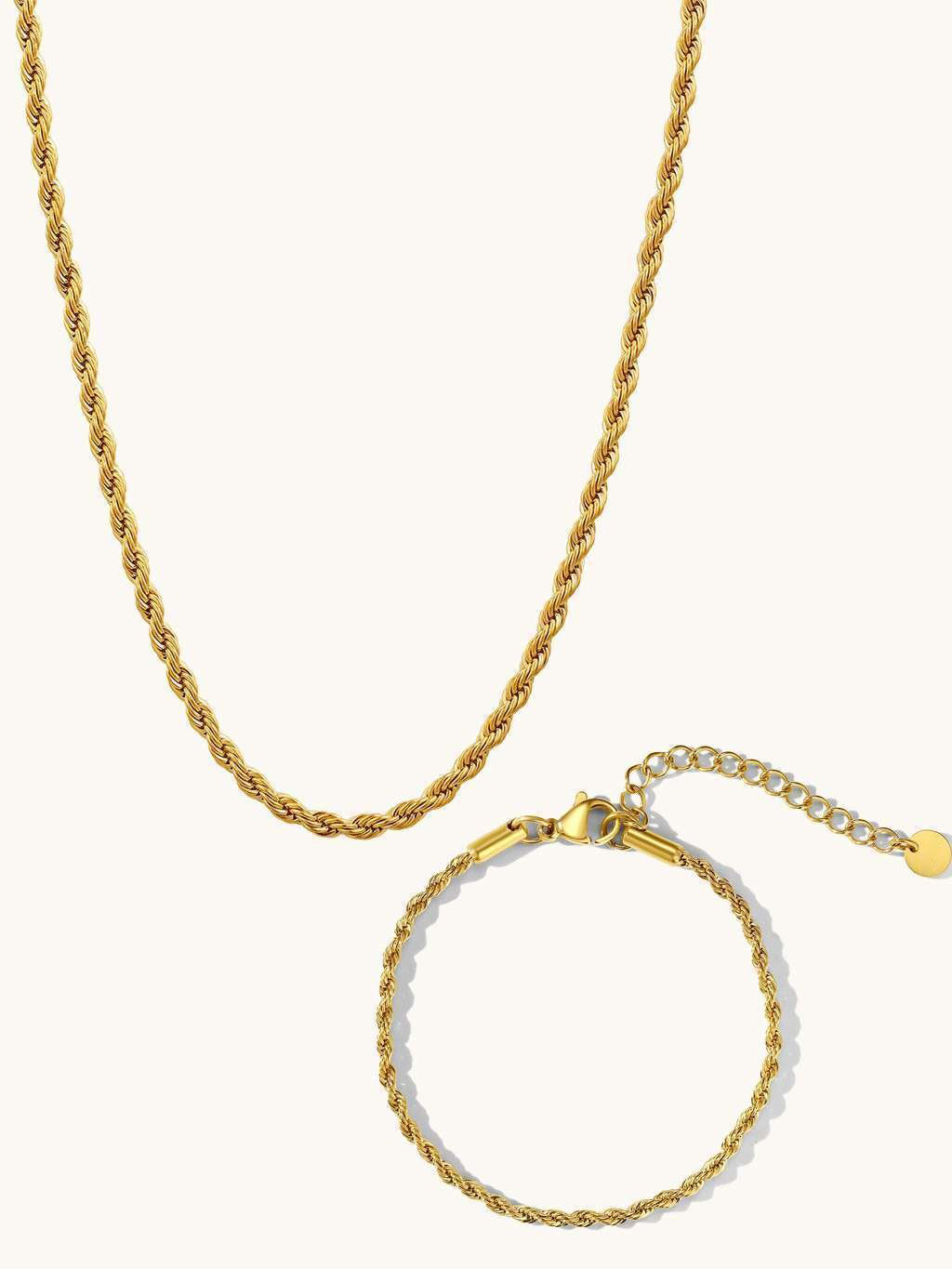 Dieses verspielte Schmuckset aus Seilkette und Seilarmband aus robustem Seil verleiht jedem Outfit eine einzigartige Note. Perfekt für alle, die stilvoll aussehen möchten. Schnappen Sie sich Ihr Exemplar jetzt!