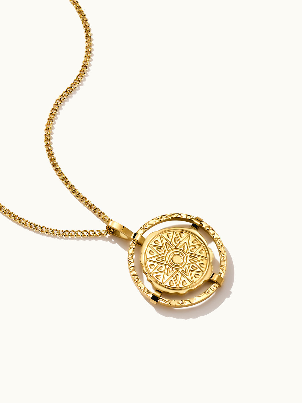 Strahlen Sie Wärme und Stil aus mit dieser Round Sun Pendant Kette. Ihr elegantes Design verleiht jedem Outfit eine sonnige Note.