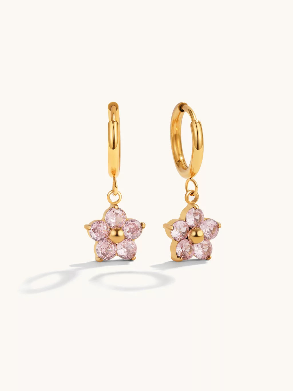 Verleihen Sie Ihrem Schmuck mit dem Single Pink Flower Zirkonia Armband & Hoop Ohrringe Set einen Hauch von Glanz. Feminin, elegant und perfekt für tagsüber und abends.